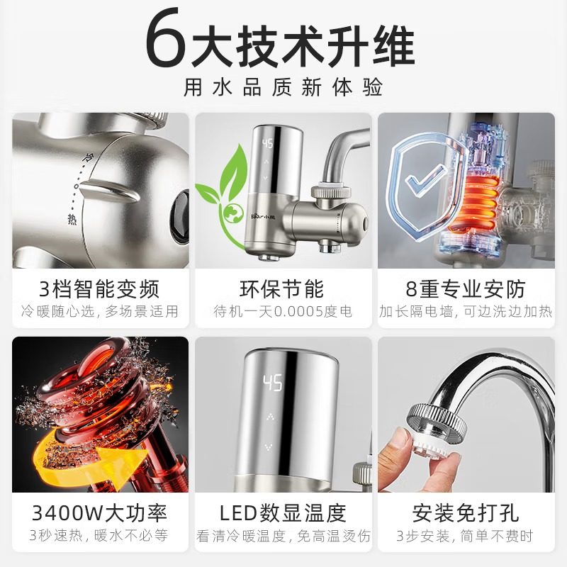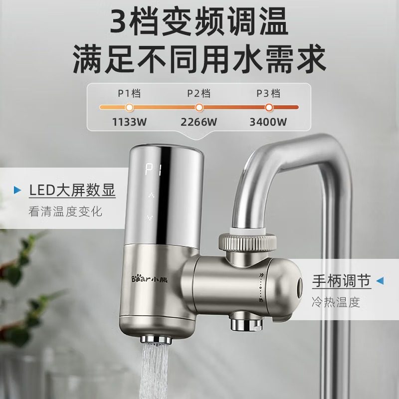 小熊电热水龙头加热器即热式变频调温过水速热家用小型厨房免安装