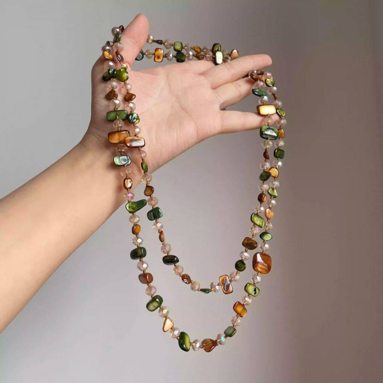 中古项链波西米亚彩色串珠双层项链2025新款复古轻奢设计感度假风