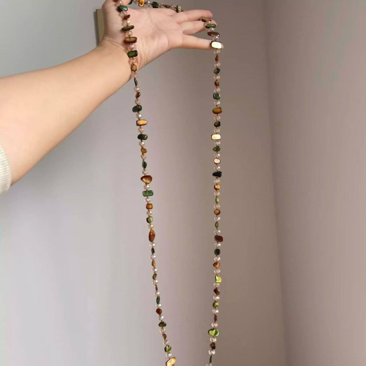 波西米亚串珠小众项链女2025新款吊坠高级感轻奢锁骨链颈链配饰秋
