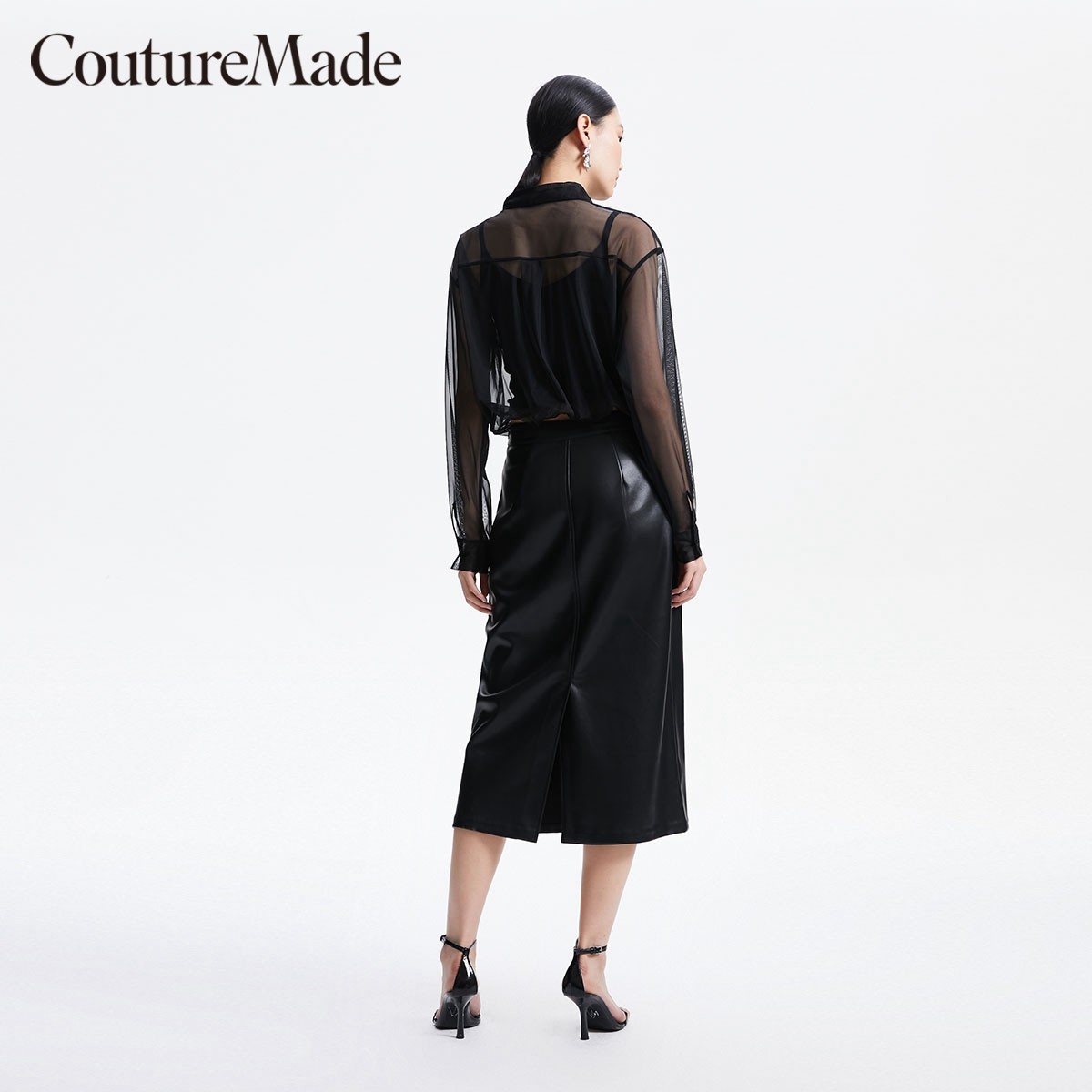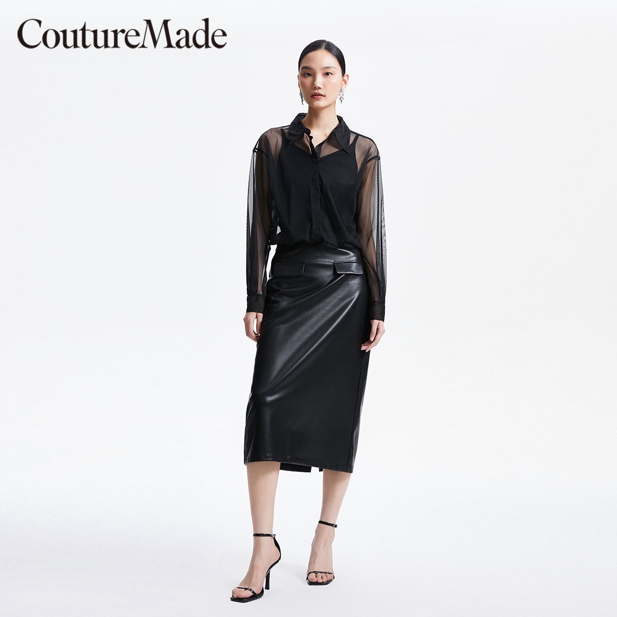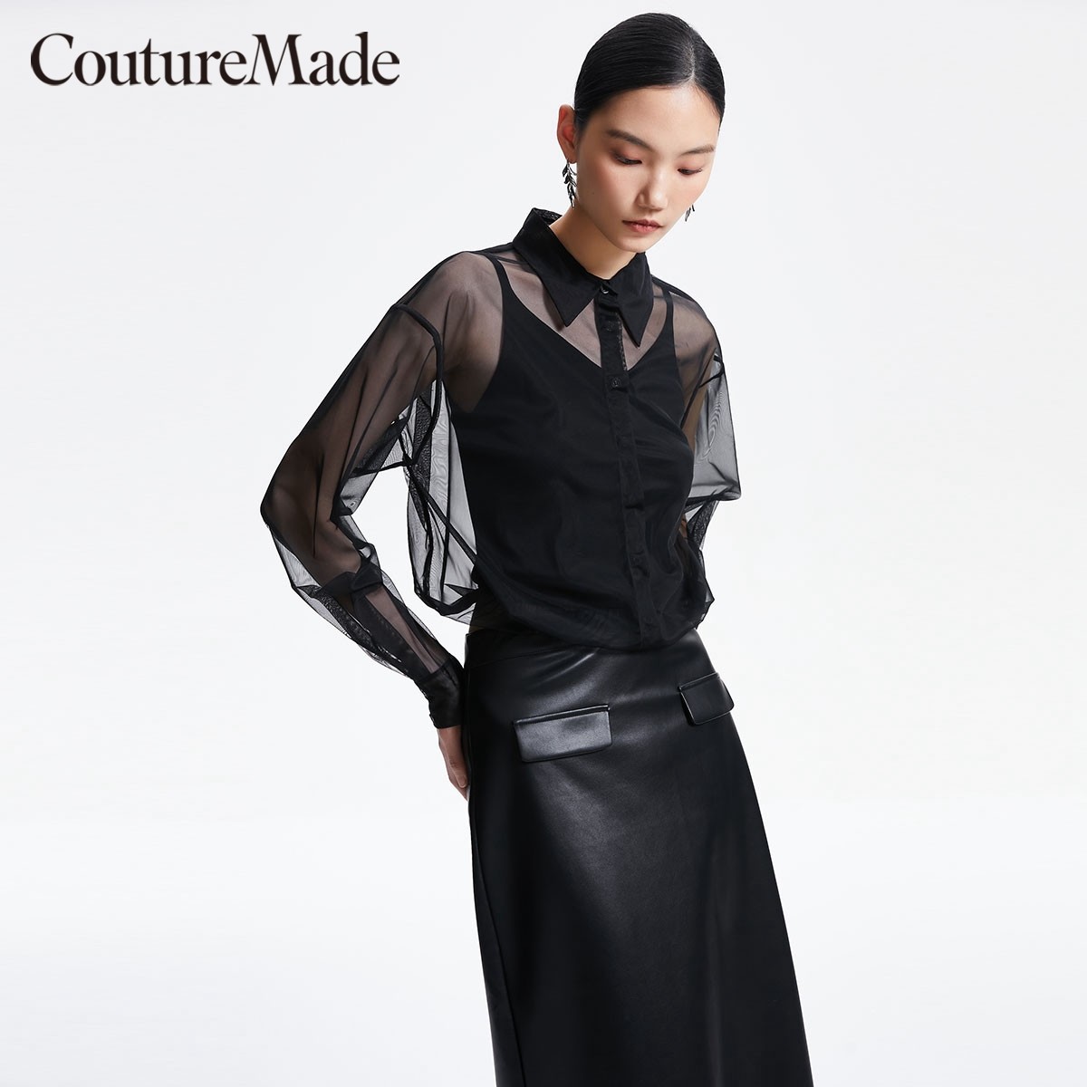 黑色假两件设计,时尚百搭;隐形纽扣门襟