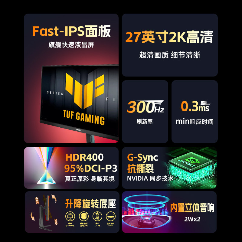 27英寸2K300Hz FASTIPS 0.3ms响应 内置音响