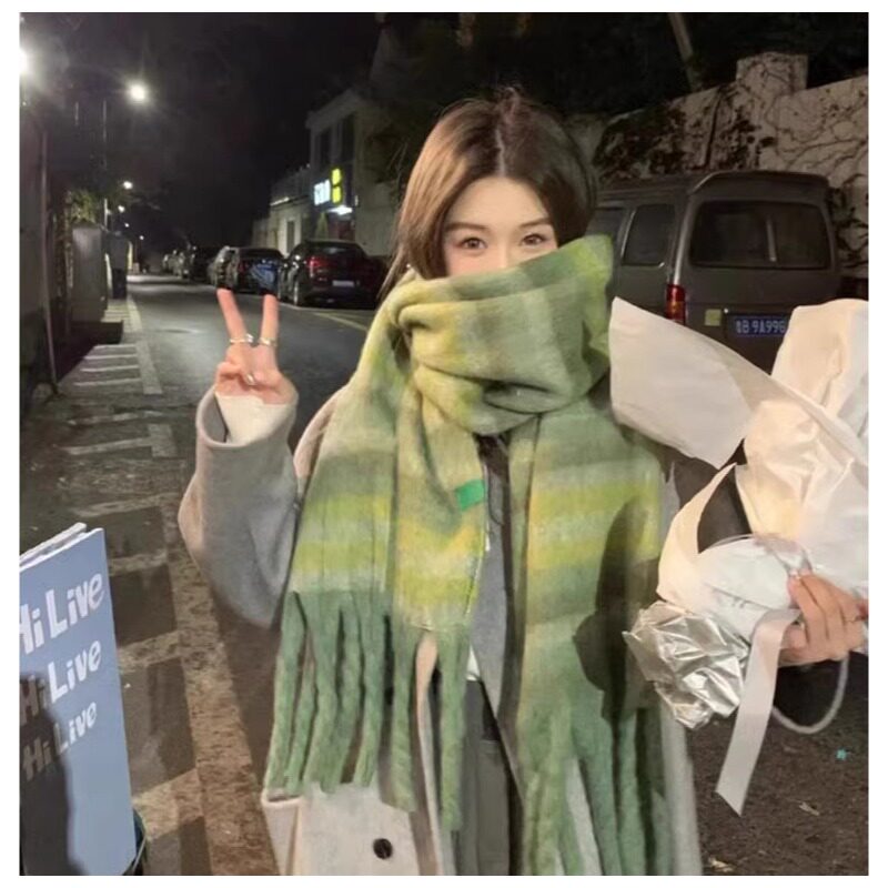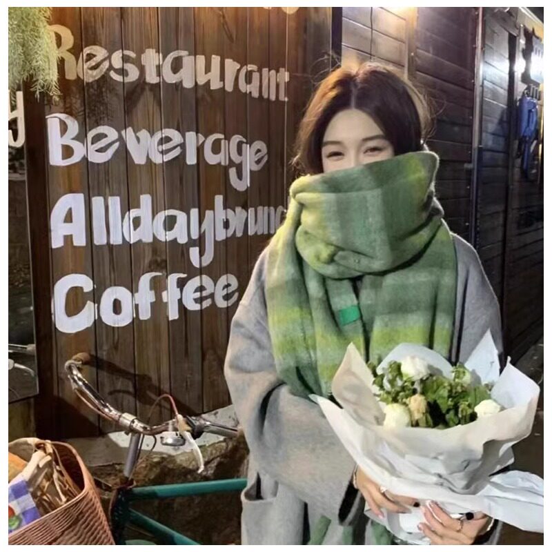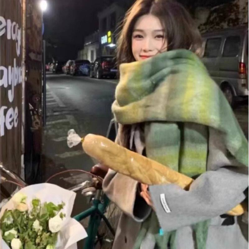 围巾女冬季2025新款条纹仿羊绒保暖围脖脖套圣诞高级感格子披肩厚