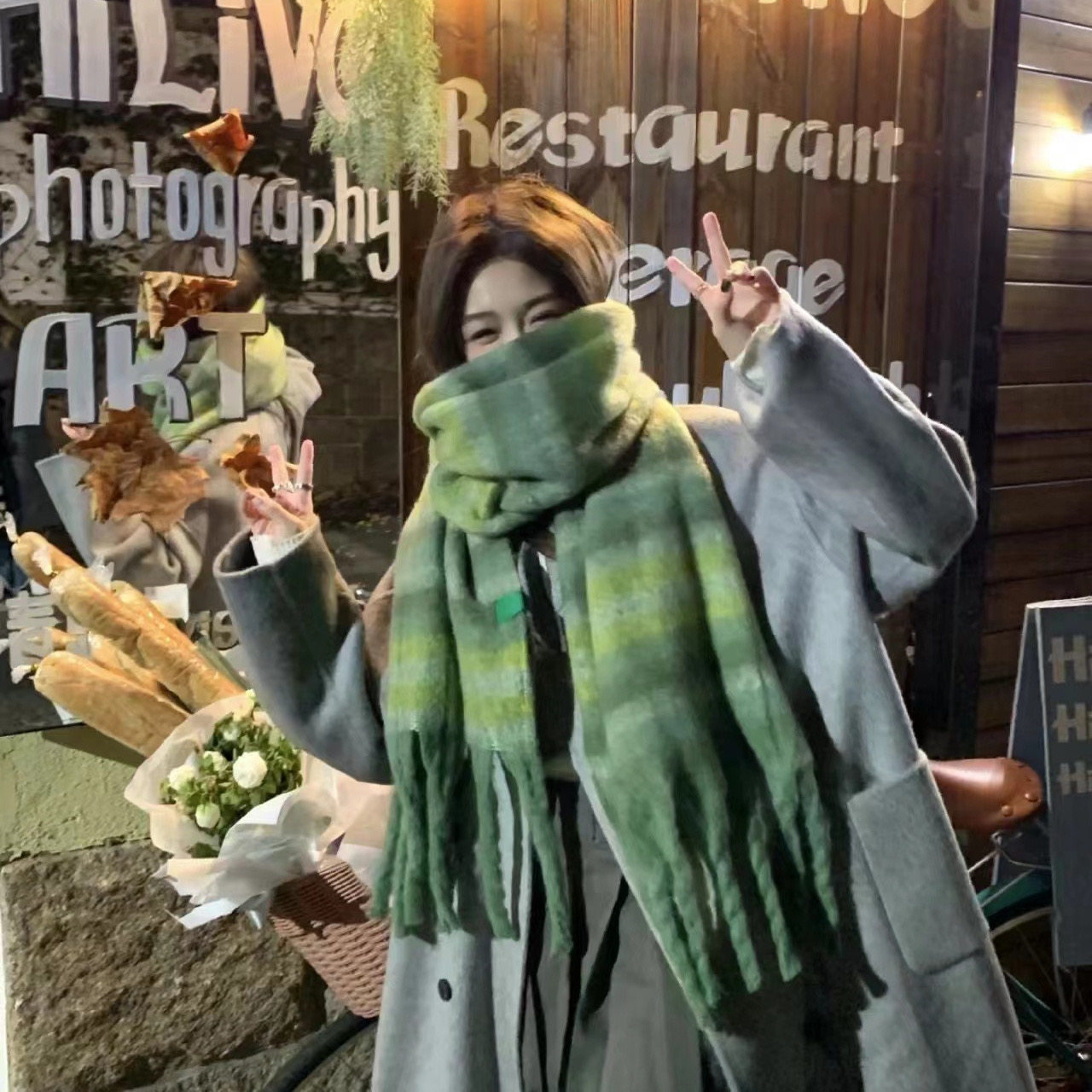 三福格子围巾韩系高级感保暖围脖披肩两用旅游外搭女冬季2025新款