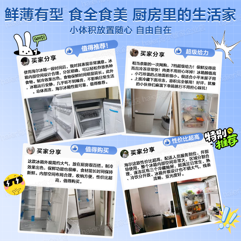 海尔冰箱以旧换新补贴217L风冷无霜变频小冰箱家用一级能效官方