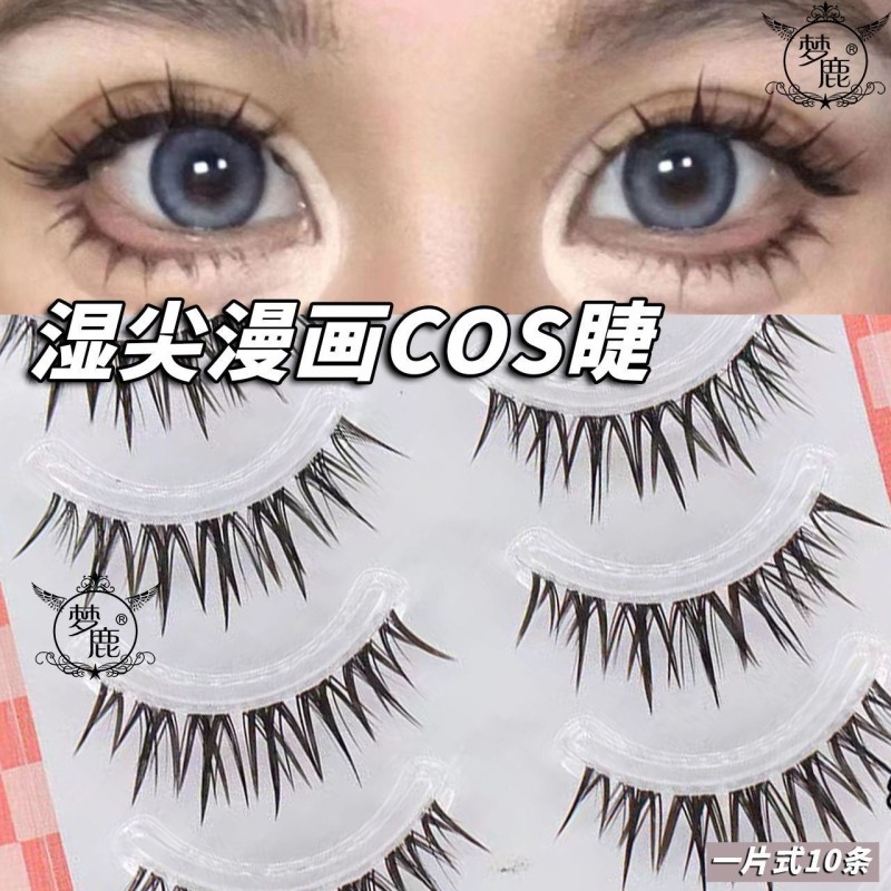 黑梗湿尖漫画cos梦鹿假睫毛浓密整条撑双眼皮肿泡眼透明梗素颜