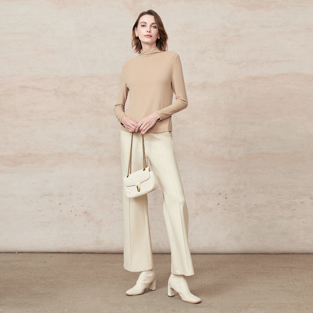 FINITY菲妮迪针织衫2025冬季新款简约半高领修身显瘦打底衫上衣女