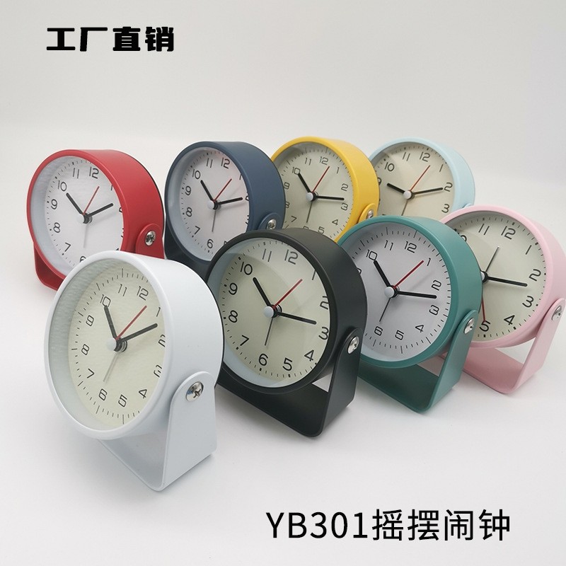 金属闹钟 小转钟 摇摆座钟 静音带闹钟石英钟 新款学生闹钟3.5寸