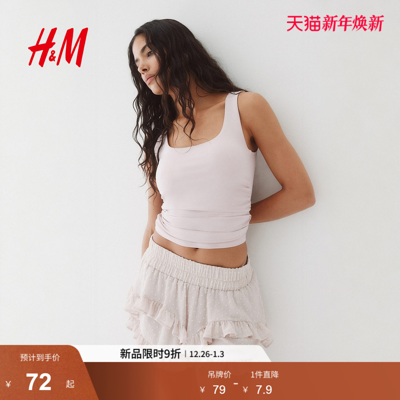 HM女装背心2025年新款时尚气质简约柔软舒适潮流褶饰背心1296055