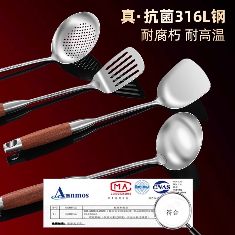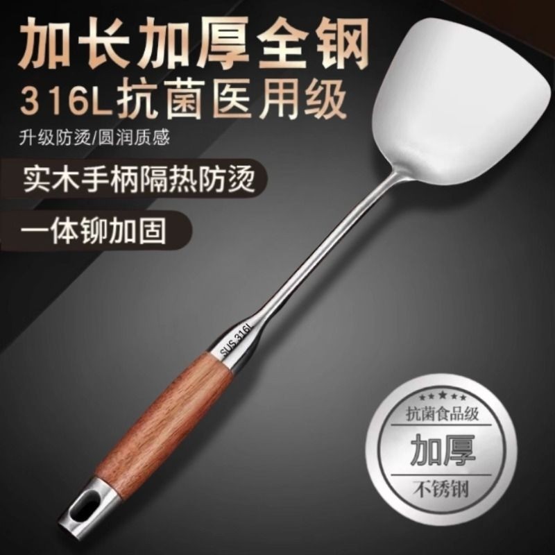 316不锈钢炒勺加厚炒菜勺铲子食品级家用厨具木柄锅铲套装铁锅铲