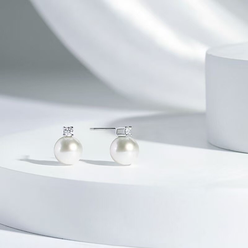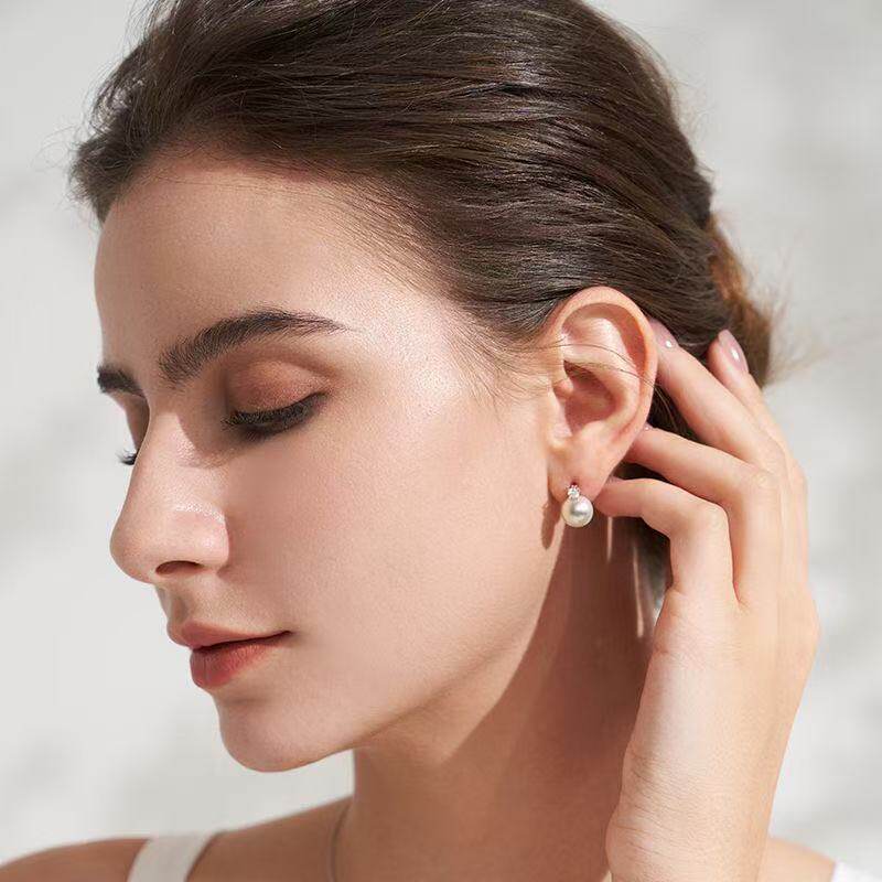 诸暨淡水珍珠耳钉S925银正圆戴妃耳环高贵气质女诸暨珍珠耳饰礼物