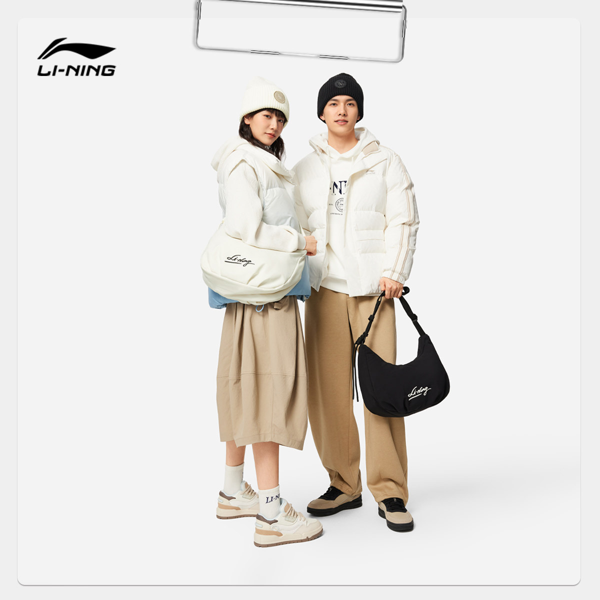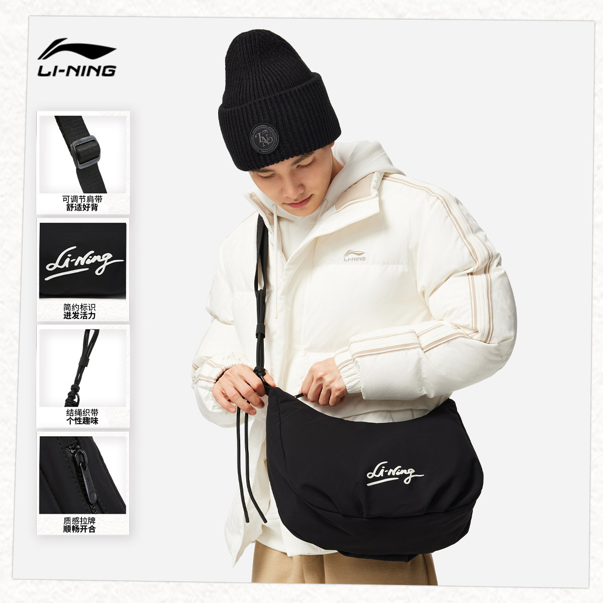 李宁斜挎包女子手提腋下包2026新款官方休闲通勤运动牛角单肩包男