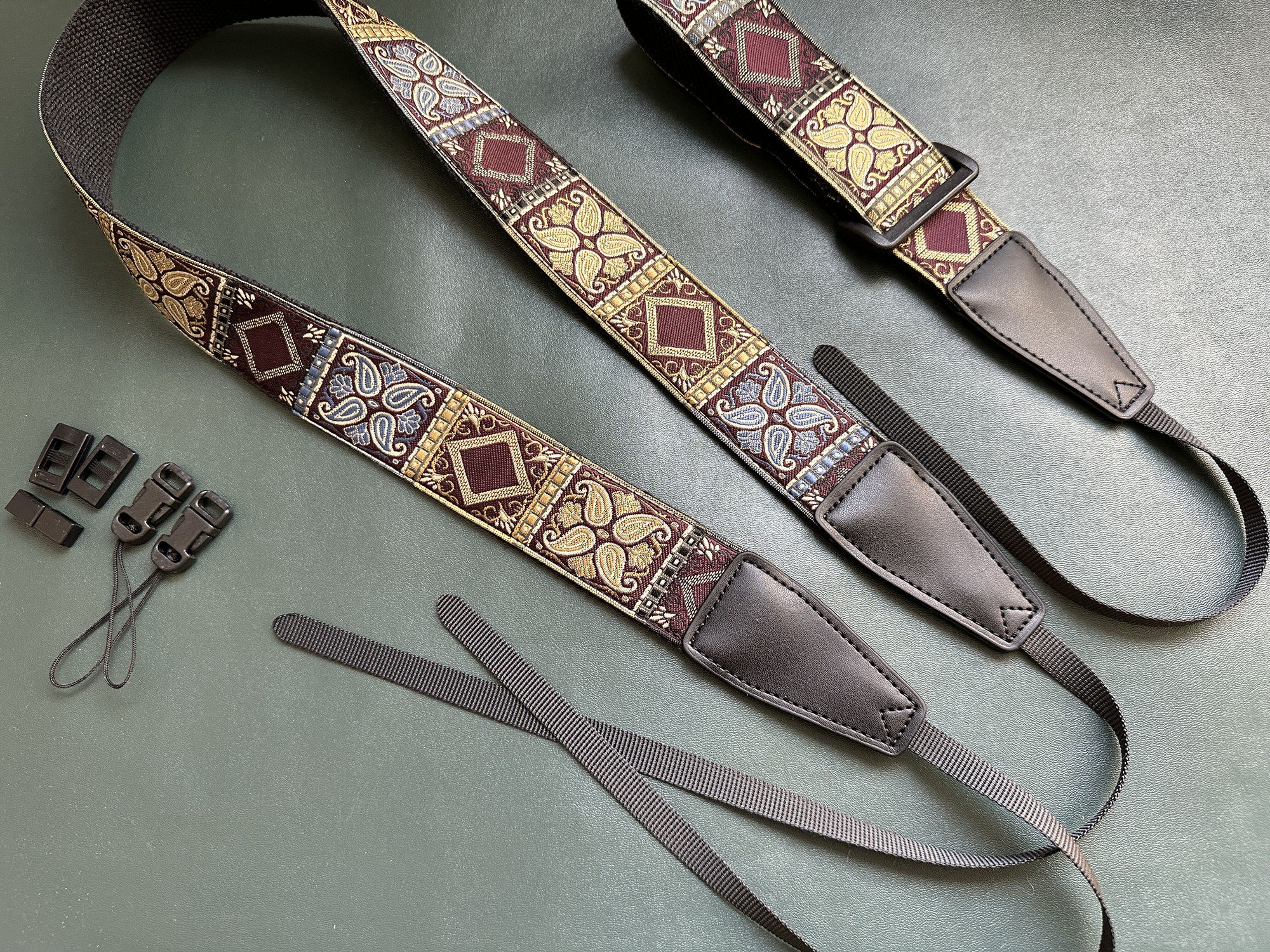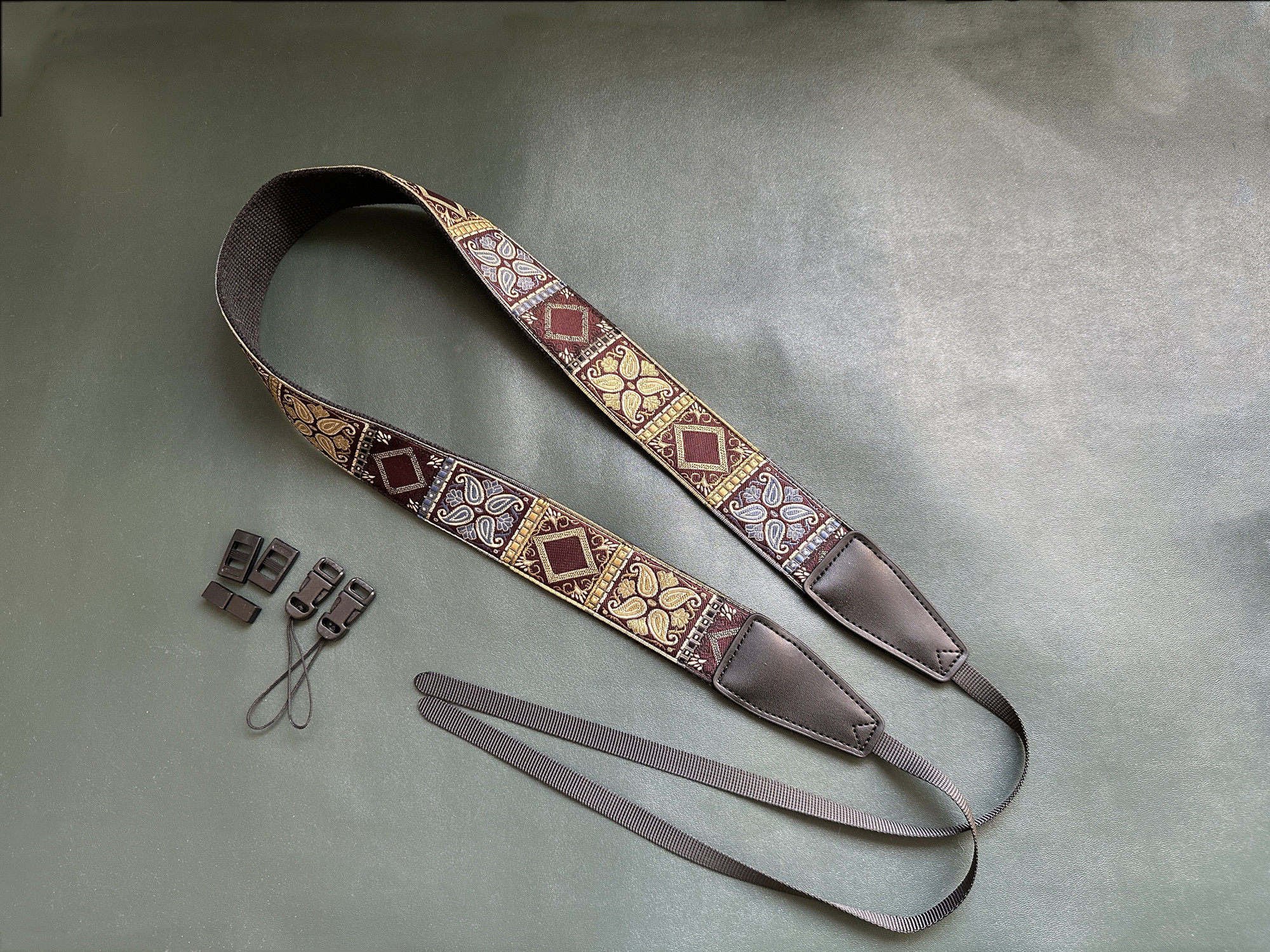 复古绛红腰果花主题柔软舒适通用相机背带通用腕带CAMERA STRAP