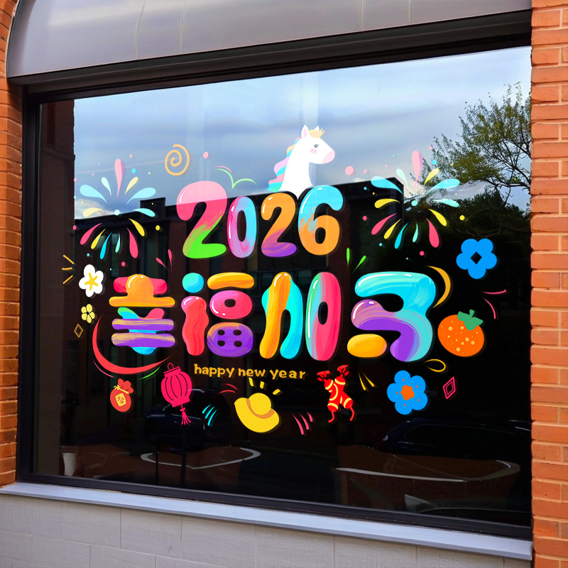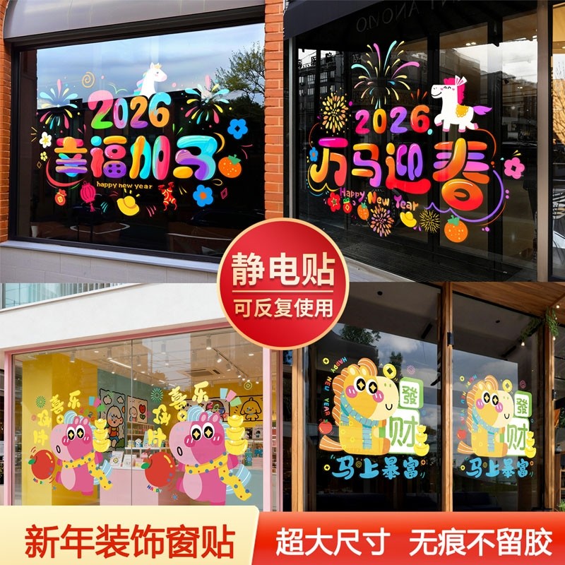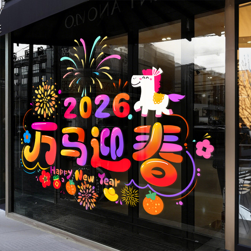 2026新年窗花马年装饰窗户玻璃门贴纸静电橱窗贴春节过年布置贴画