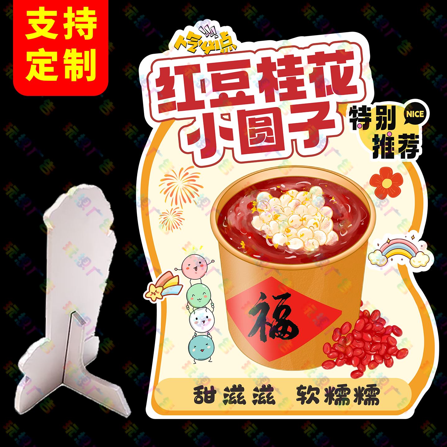 红豆沙小圆子广告牌摆摊立牌桂花酒酿小丸子立式桌牌小吃展示牌新