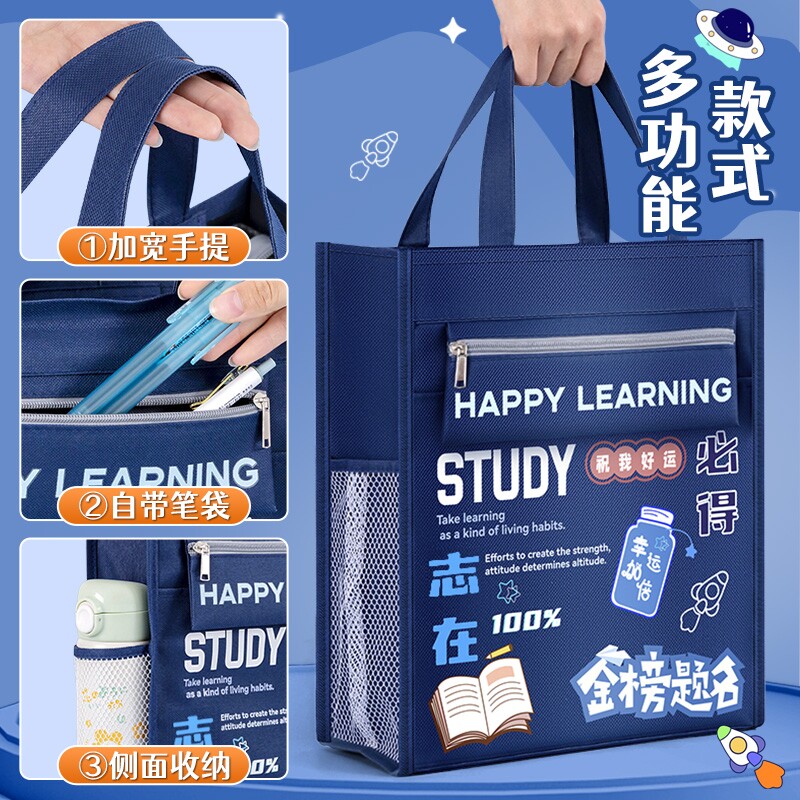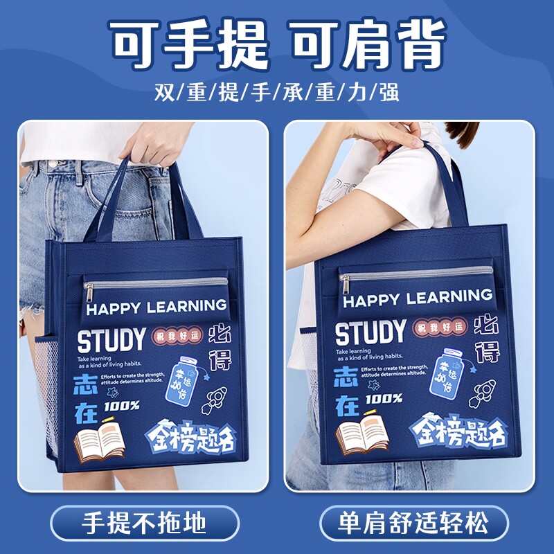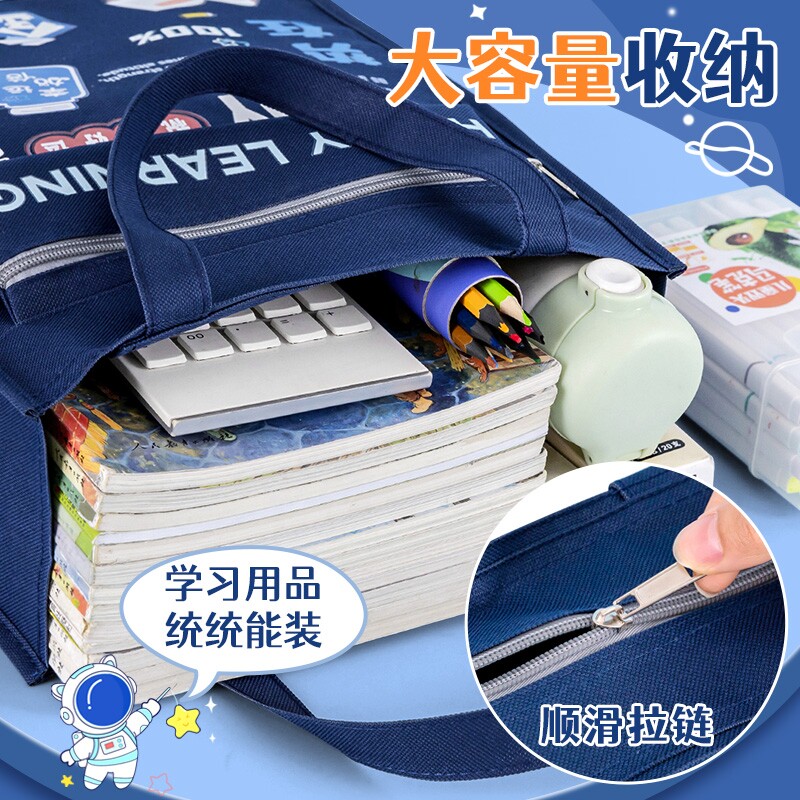 补习袋手提袋拎书袋小学生用男孩女童书包文件袋帆布美术袋补习班作业试卷袋收纳袋儿童学习补课包大容量防水