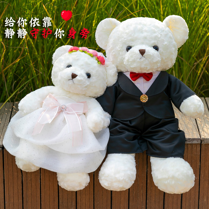 压床布娃娃一对婚庆毛绒玩具婚纱熊情侣结婚礼物新婚房泰迪熊公仔