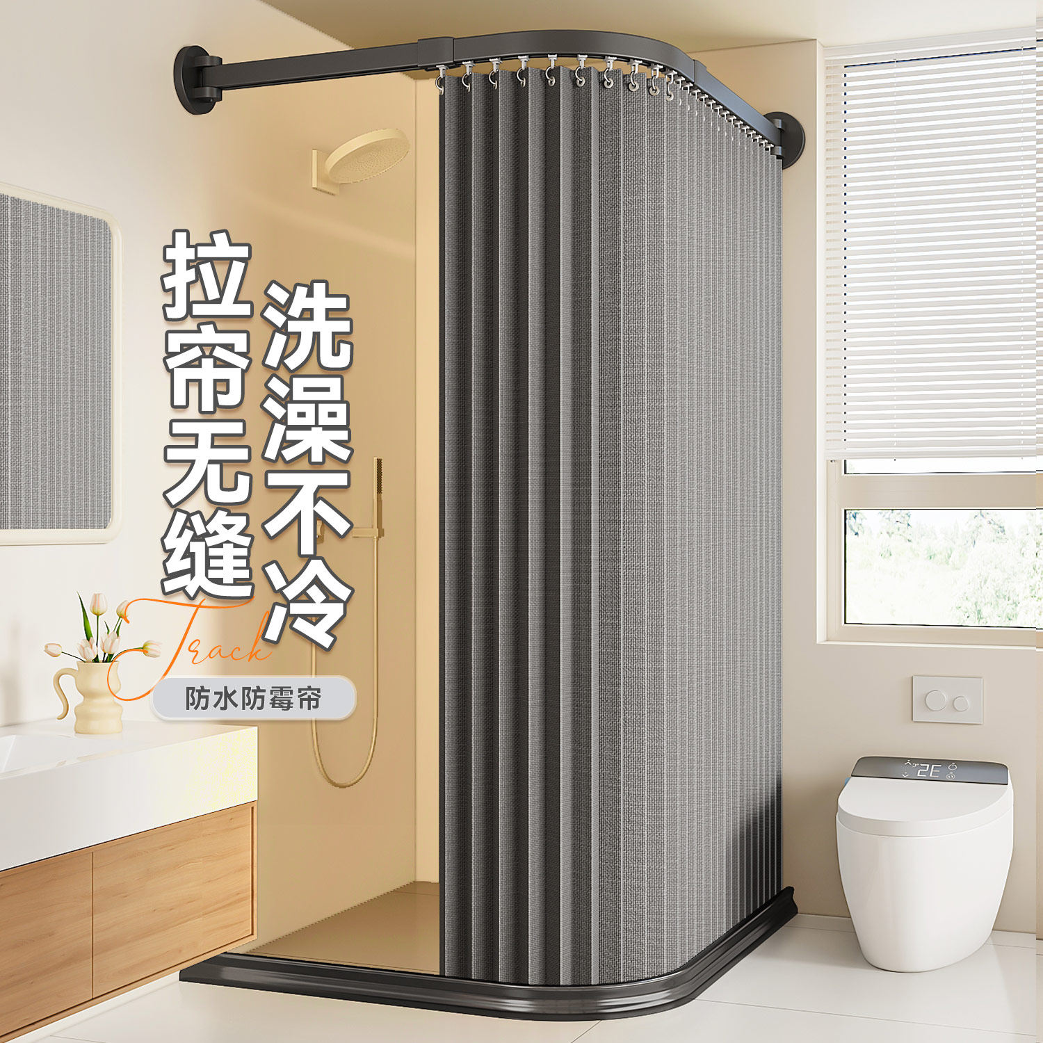 浴室浴帘防水布套装洗澡卫生间窗帘弧形杆帘子门帘隔断帘防霉挂帘