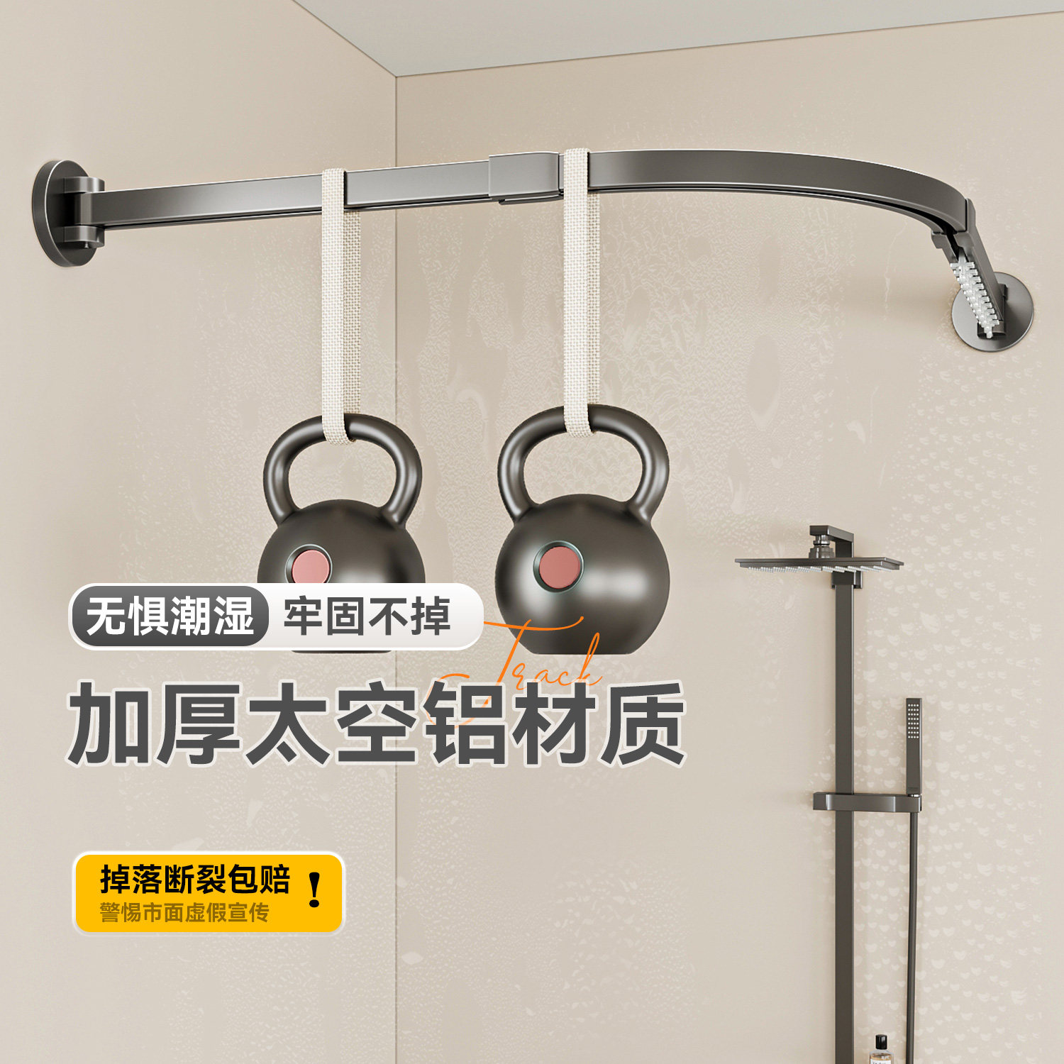 隐形折叠浴帘弧形轨道安装静音顺滑