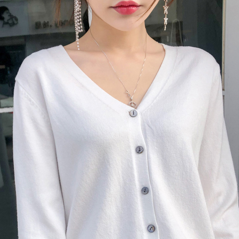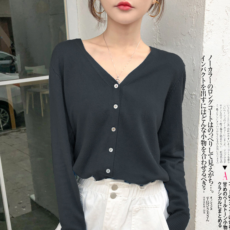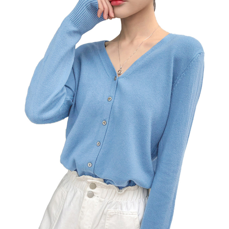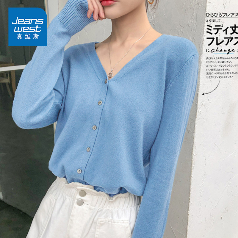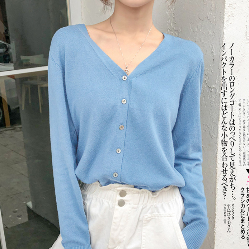 春秋薄款羊毛针织开衫女韩版圆领宽松短款羊绒衫外搭毛衣外套上衣