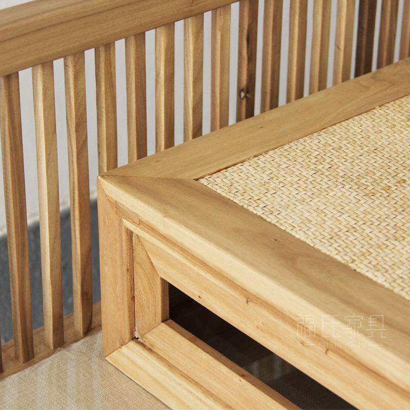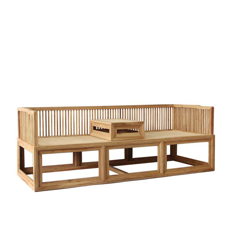 老榆木罗汉床客厅禅意实木沙发双人榻中式三人沙发床免漆床榻休闲