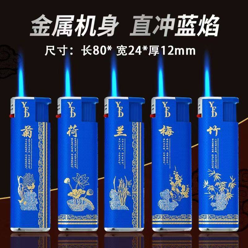 2024新款梅兰竹菊直冲蓝焰金属打火机时尚高颜值防风耐用防爆高档