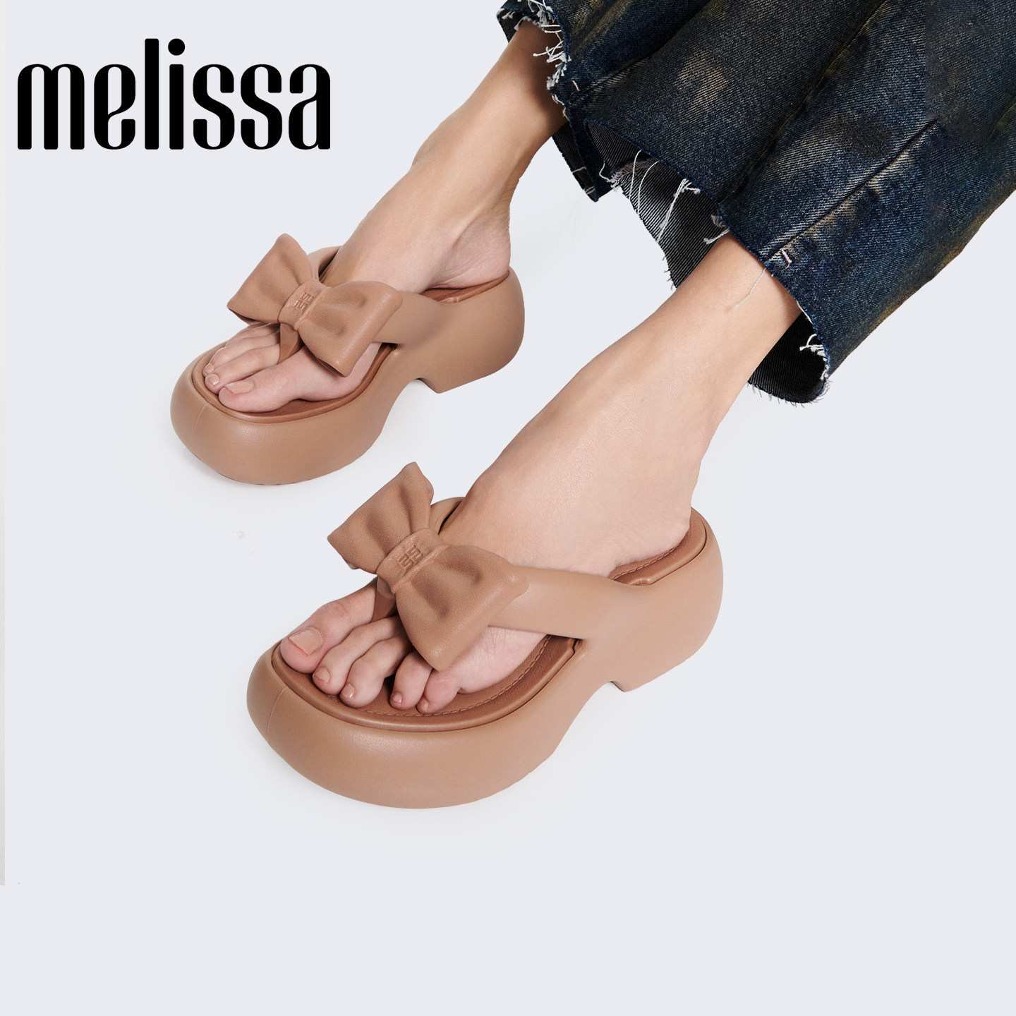 Melissa/梅丽莎26新品女士厚底蝴蝶酥面包人字拖鞋37622-Y