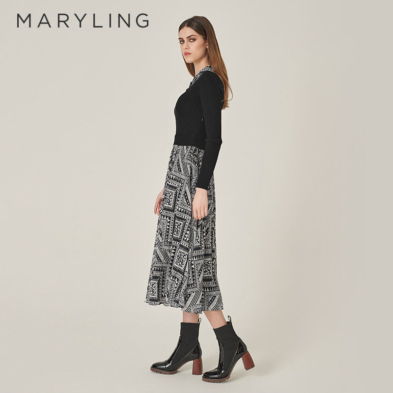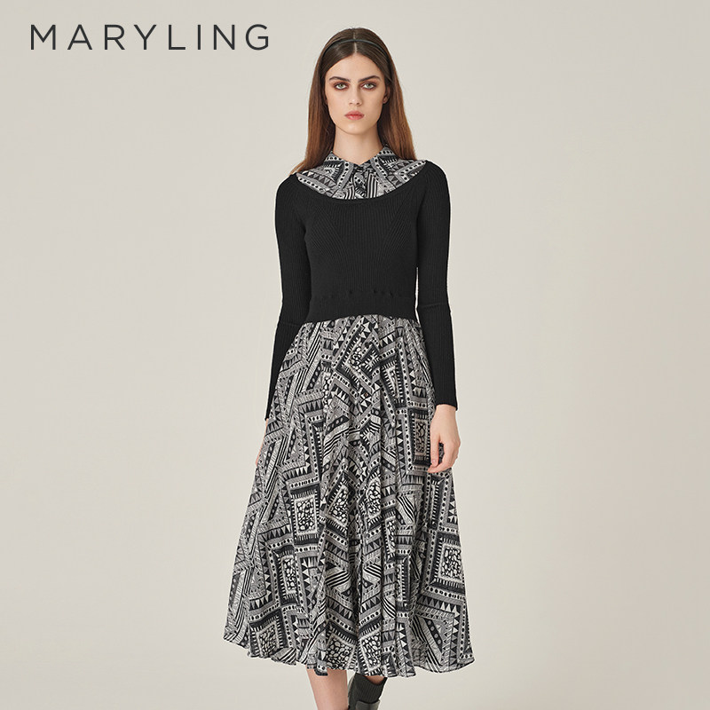 【艺术冰雕】MARYLING玛俪琳秋新品针梭印花连衣裙A1EGW62660