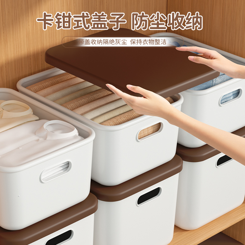 收纳箱家用衣柜分层秋冬衣服收纳盒篮带盖整理盒可折叠储物筐神器