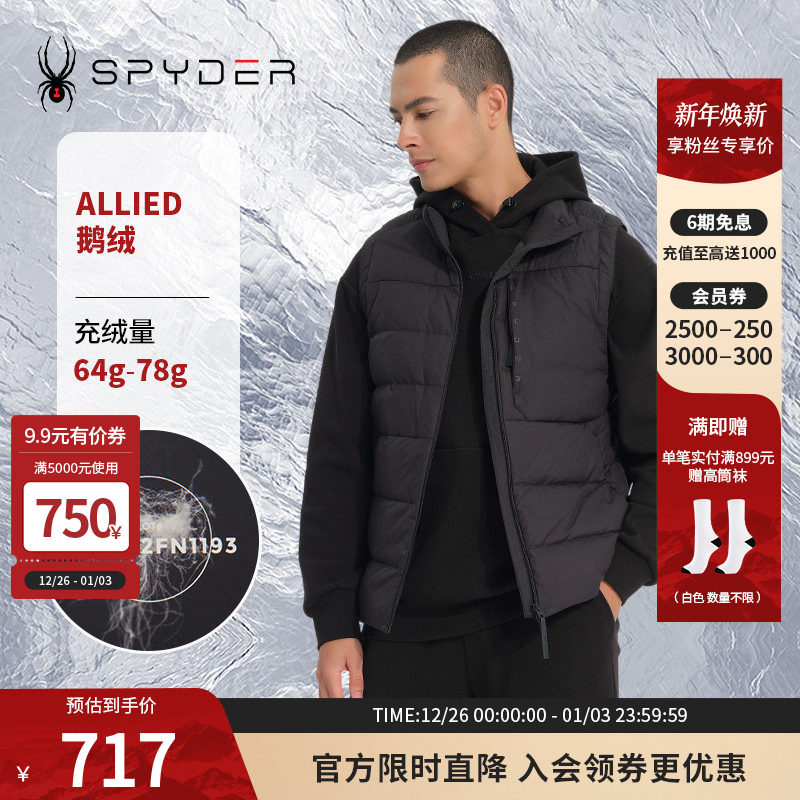 SPYDER蜘蛛秋冬男子URBAN LIFE简约保暖透气鹅绒羽绒马甲23CF215M
