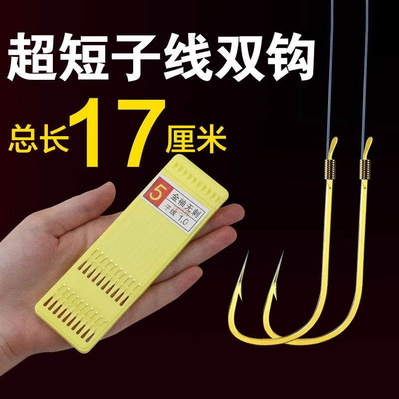 双钩绑好成品鱼钩金袖超短0.1#子线台钓野钓短子线鲫鱼钩无刺溪流
