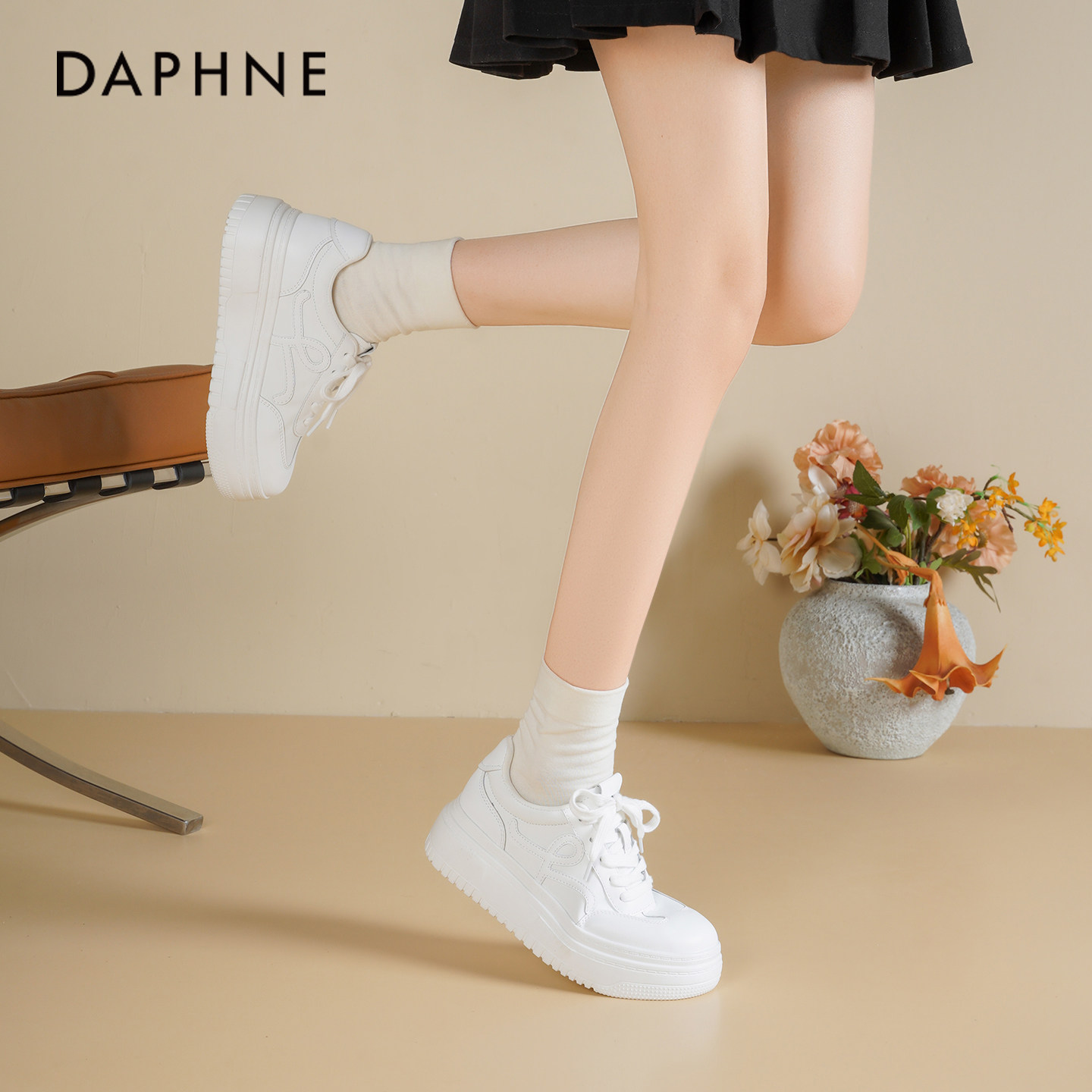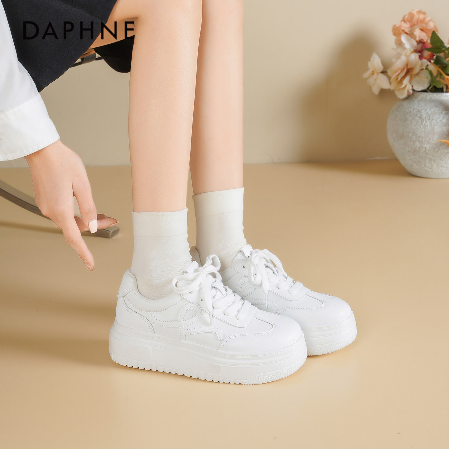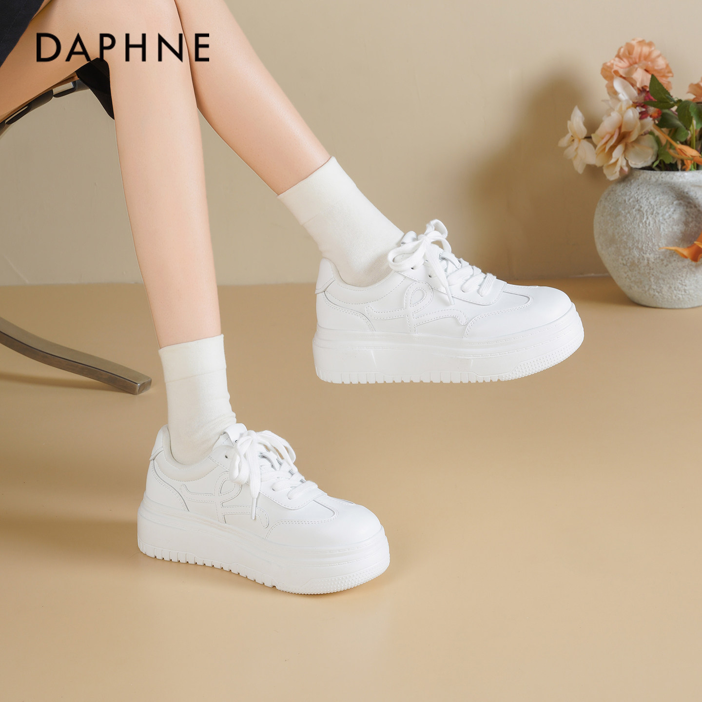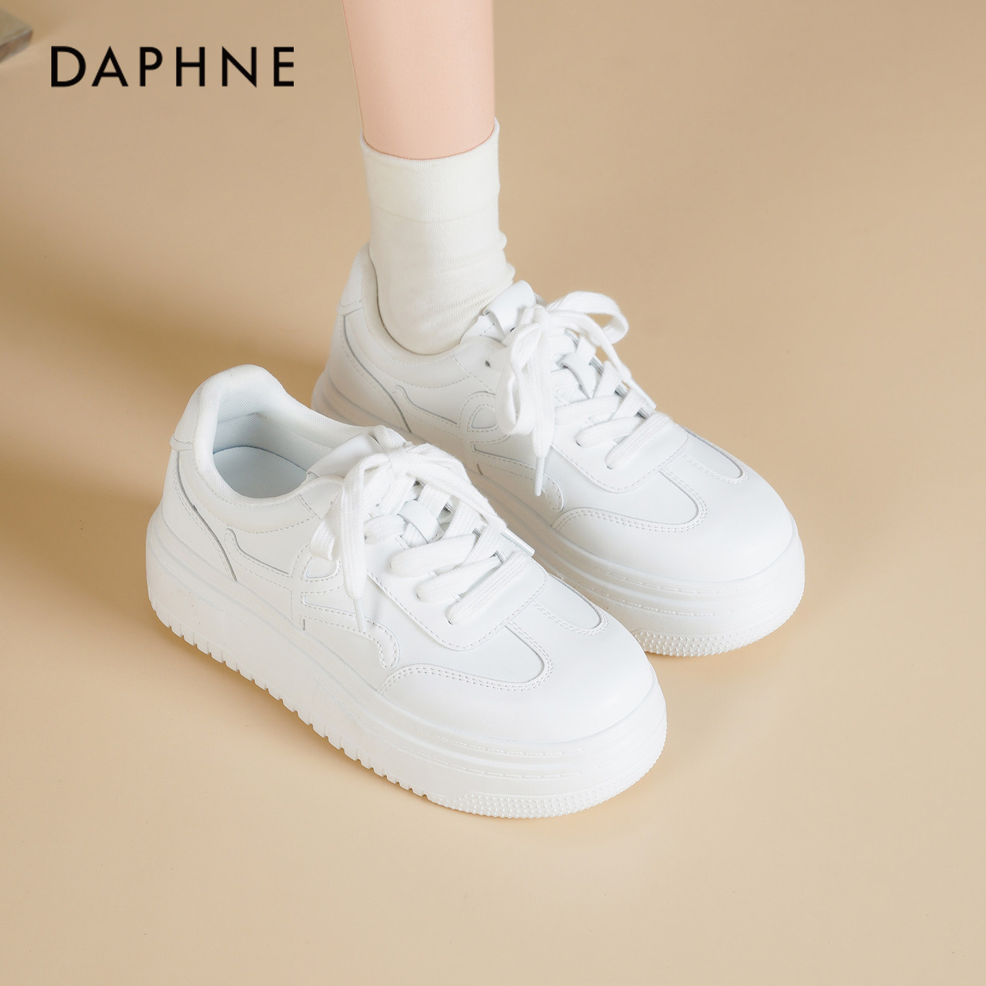 达芙妮厚底小白鞋女2026新款春季百搭运动休闲鞋增高松糕板鞋子女
