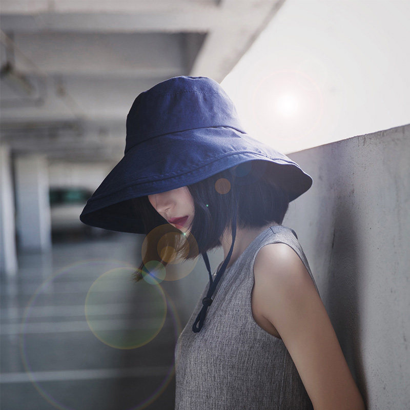 日系可折叠夏季条纹渔夫帽女新款长防晒帽子时尚盆帽大头围太阳帽