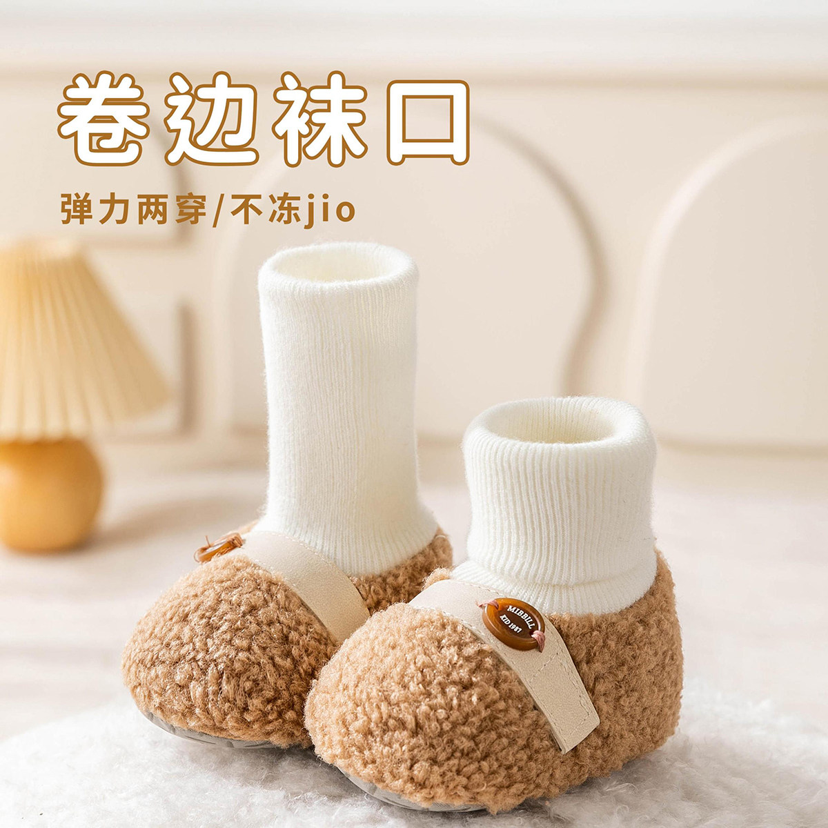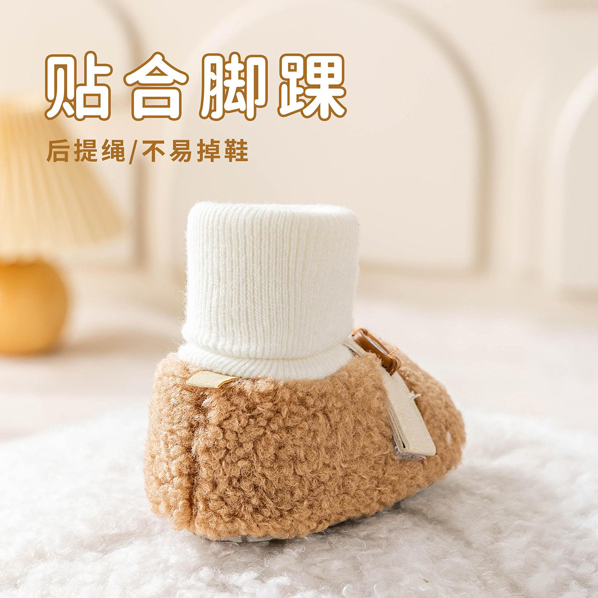 婧麒婴儿鞋子冬季新生儿软底防滑棉鞋加绒保暖宝宝鞋一体不掉跟鞋