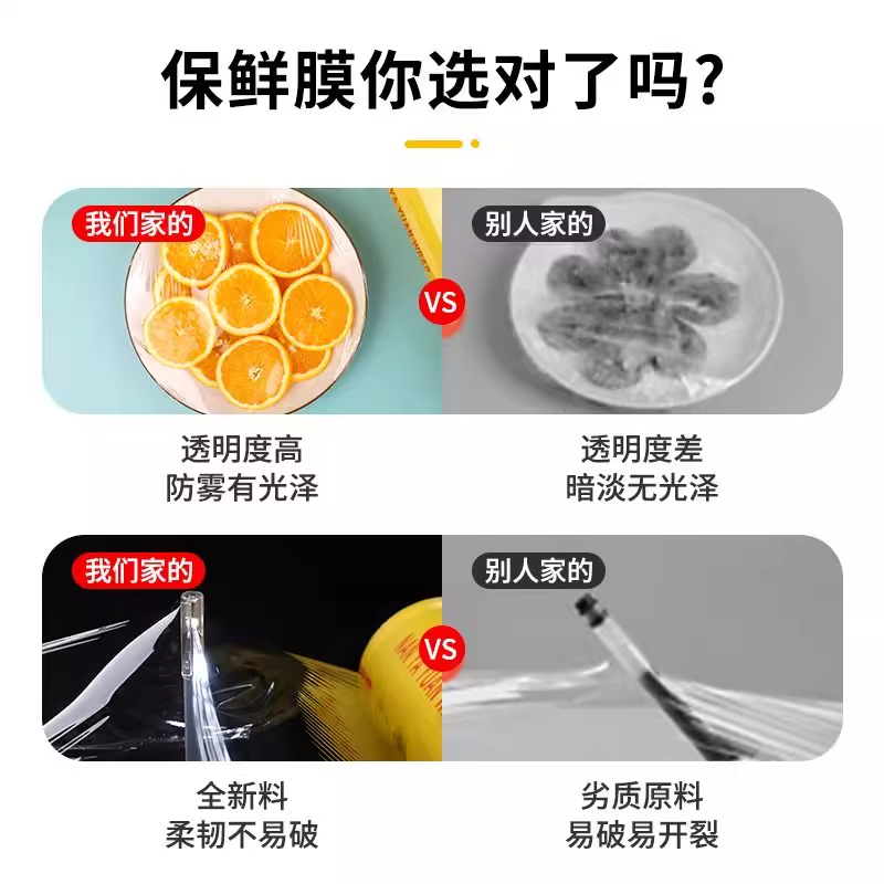 滑刀式PE食品切割器一次性家用食品级保鲜膜厨房耐高温大卷装盒装
