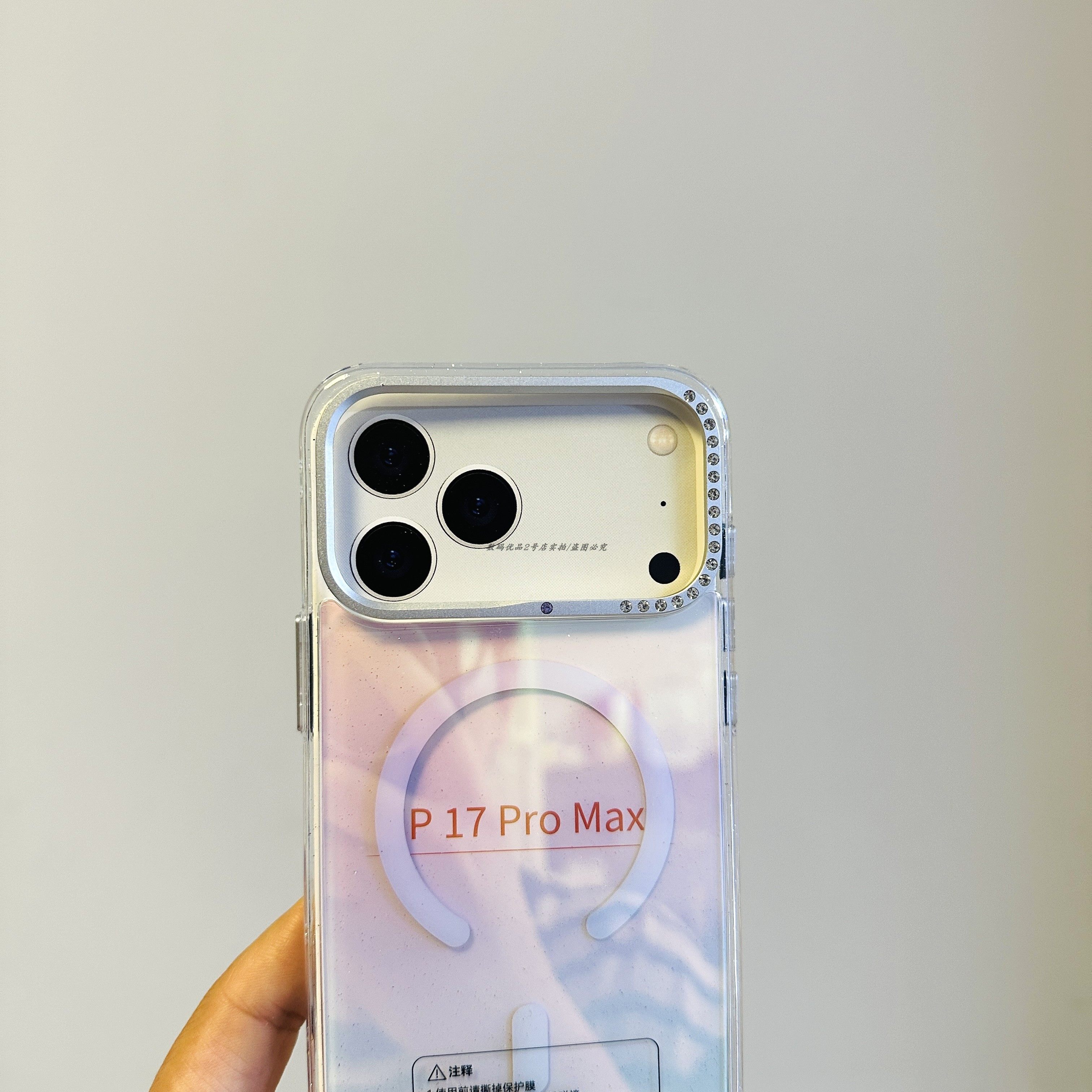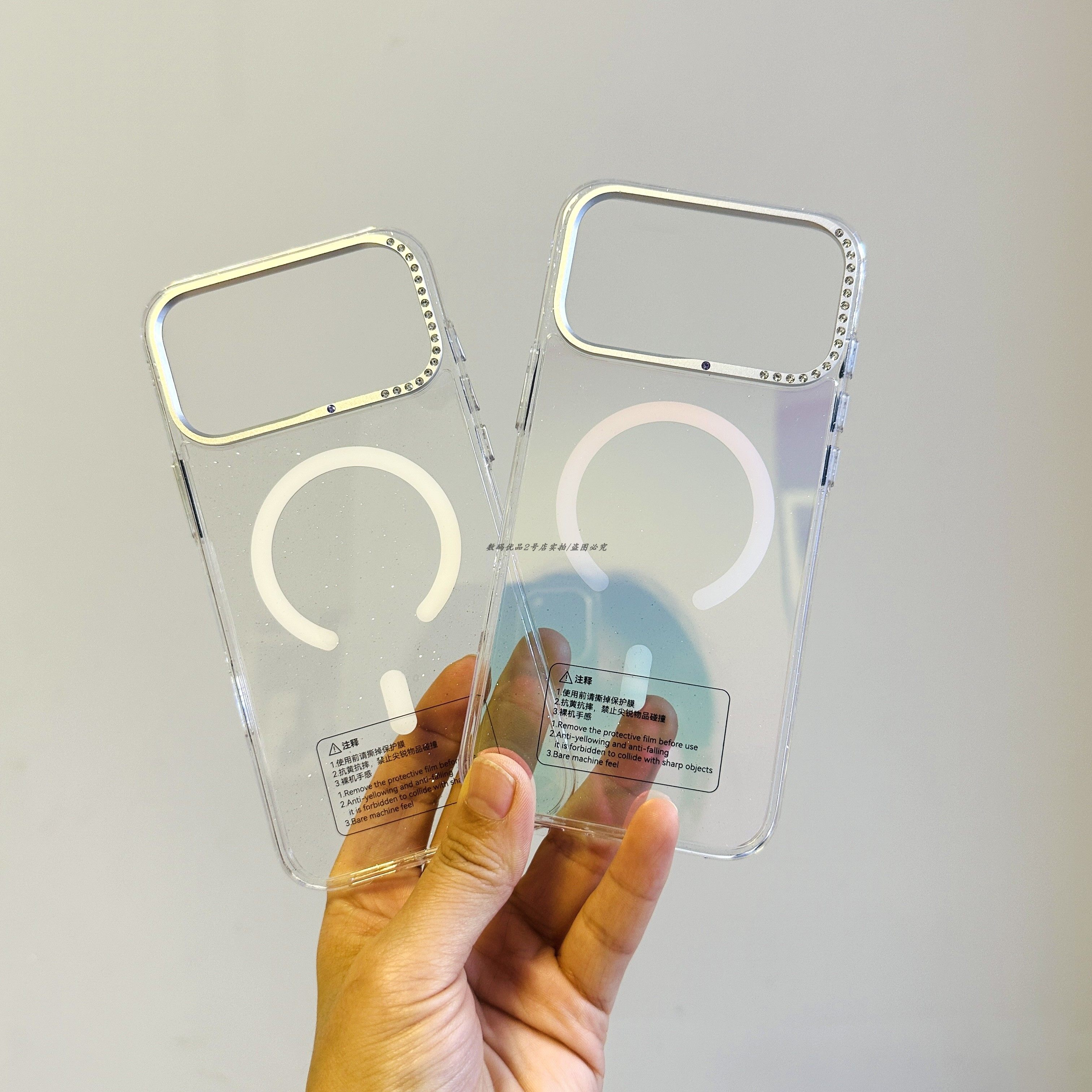 睿博冰晶磁吸手机壳适用于苹果17pro闪粉带钻保护壳抗氧化镭射壳k