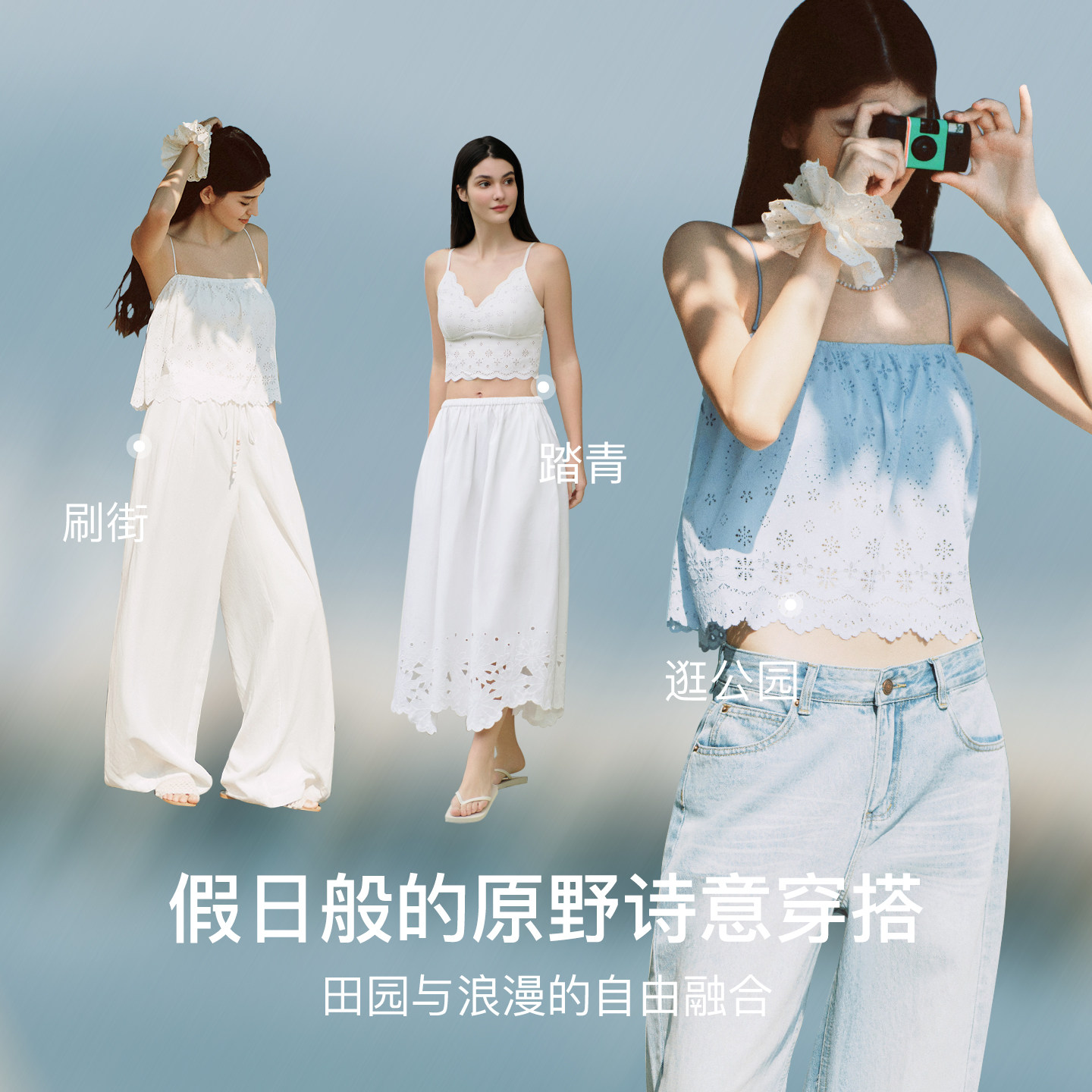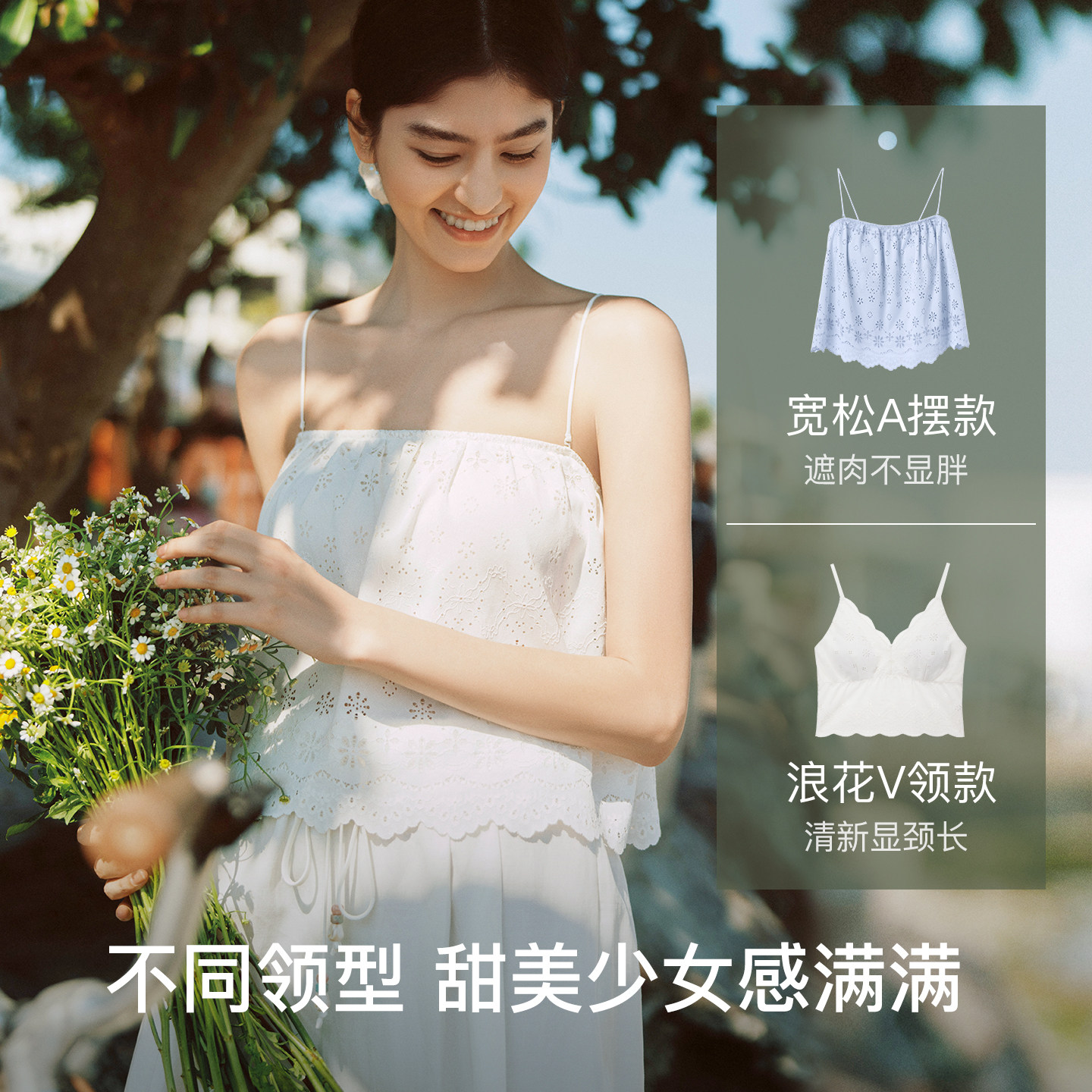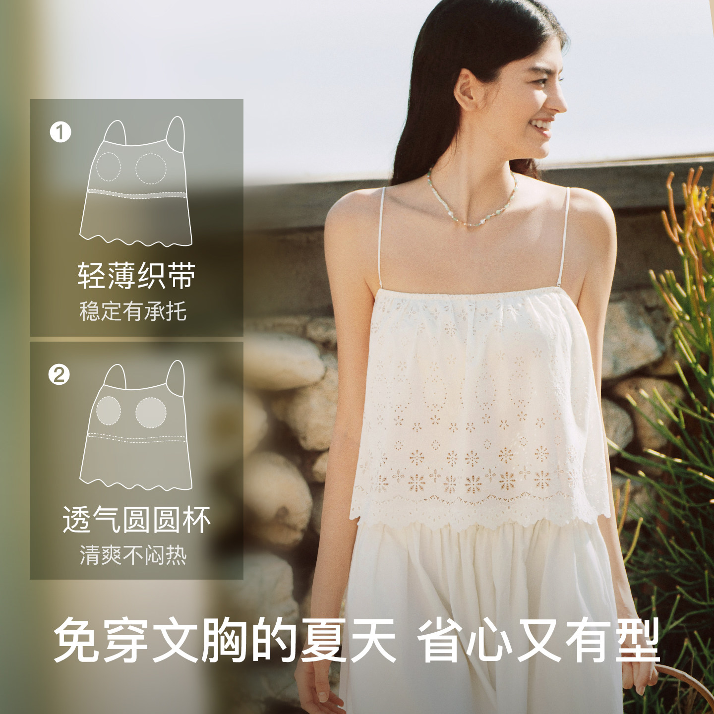 ubras小雏菊蕾丝白色吊带背心抹胸挂脖胸垫文胸美背凉感长内衣女