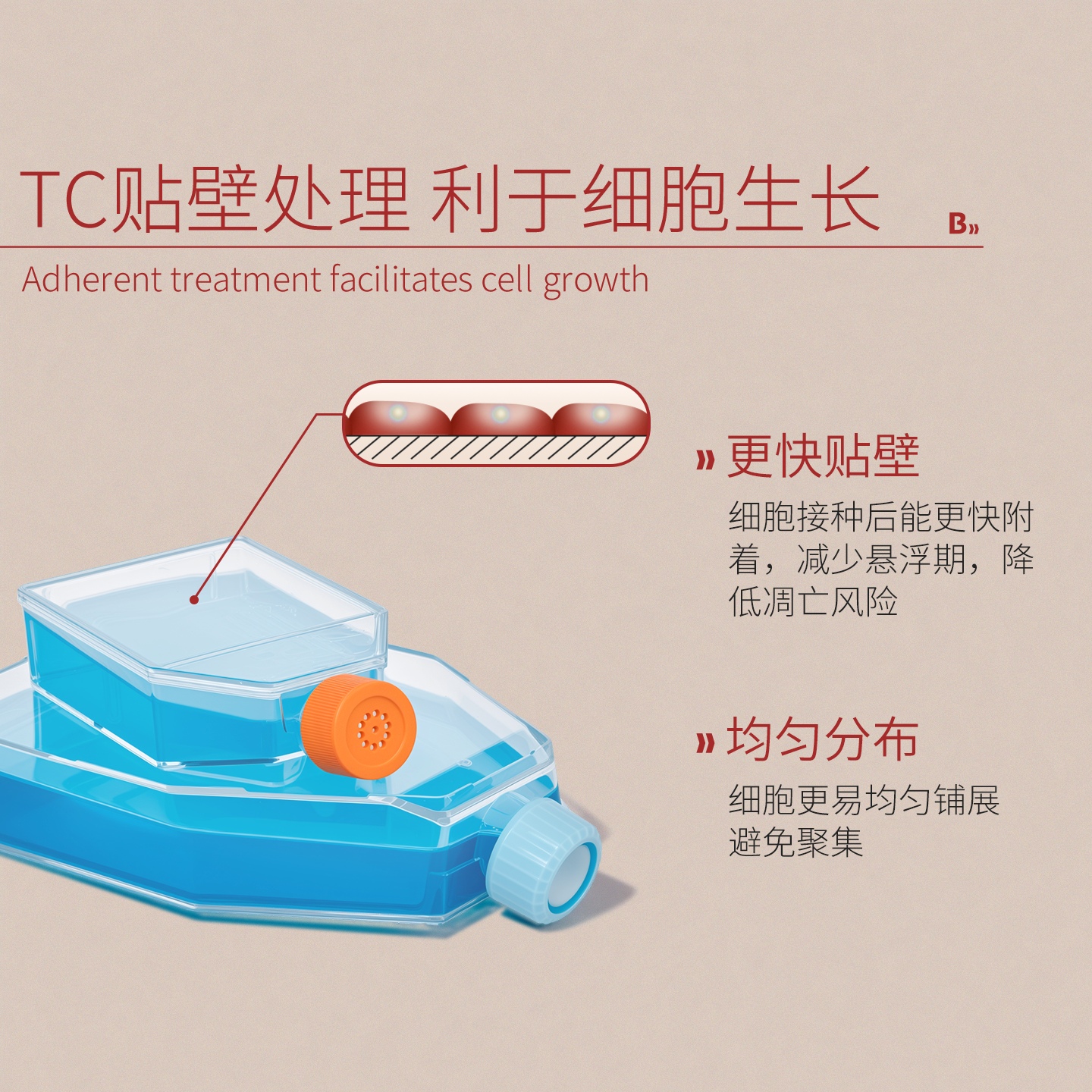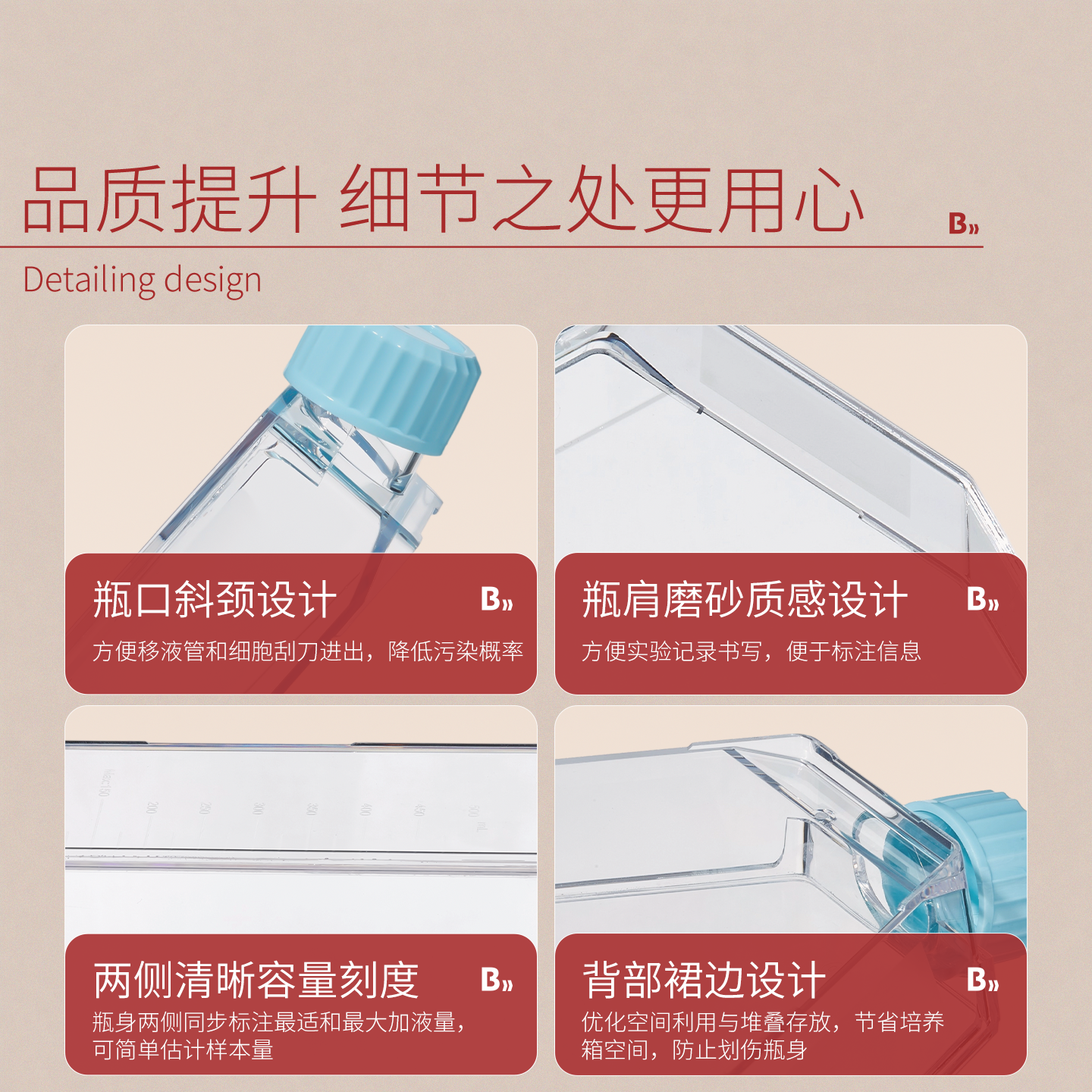 比克曼生物无菌细胞培养瓶斜颈螺口T75贴壁细胞瓶T25密封透气盖TC处理贴壁处理无酶无热原矩形斜颈康宁
