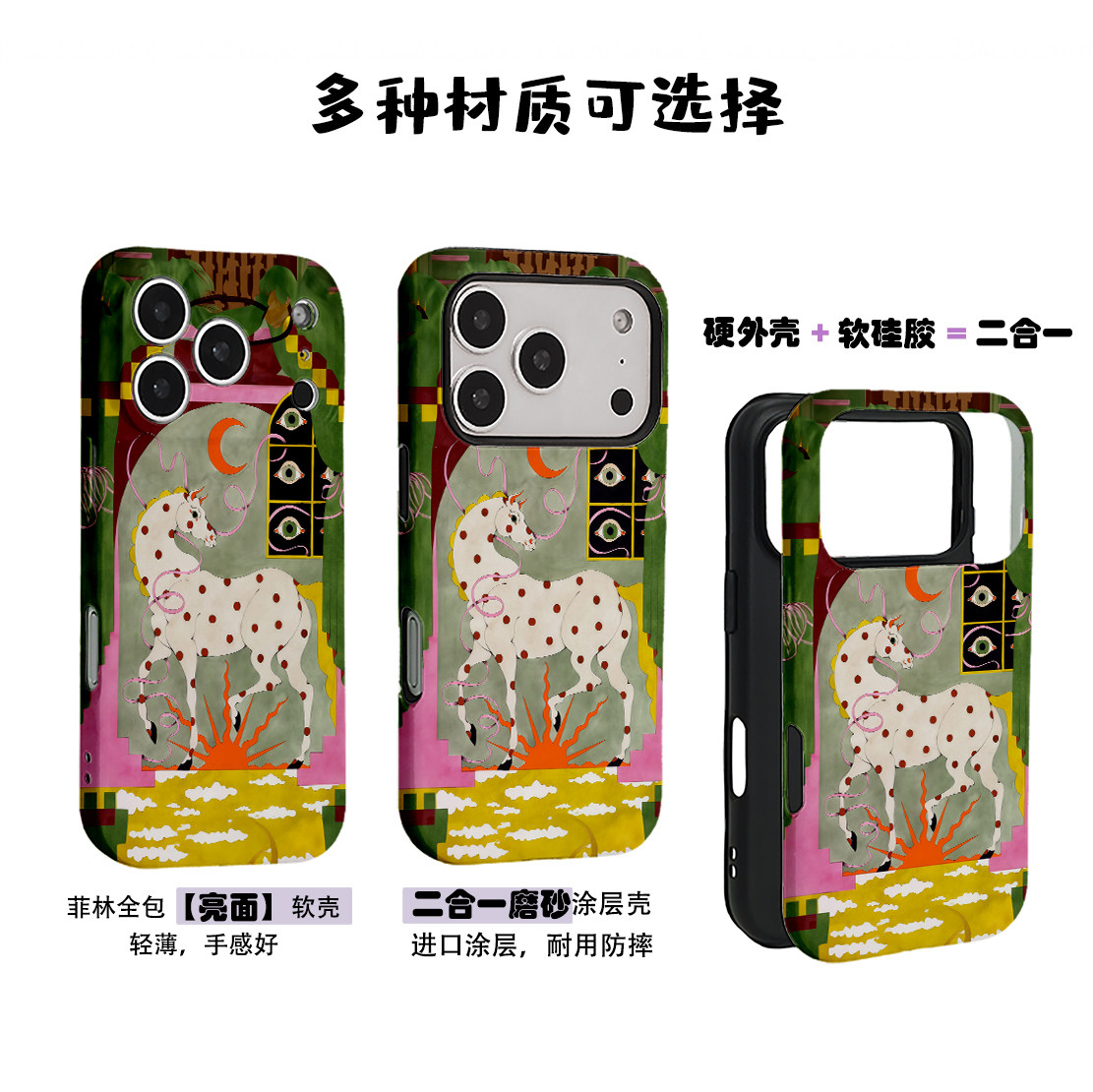 马年艺术复古波点马菲林二合一手机壳适用苹果17nova14华为p70mate60小米15opporeno14vivo荣耀300iPhone16