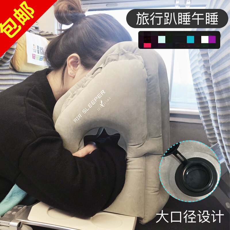 旅行飞机充气抱枕午睡枕户外午休枕趴趴枕便携护颈充气枕居家睡觉