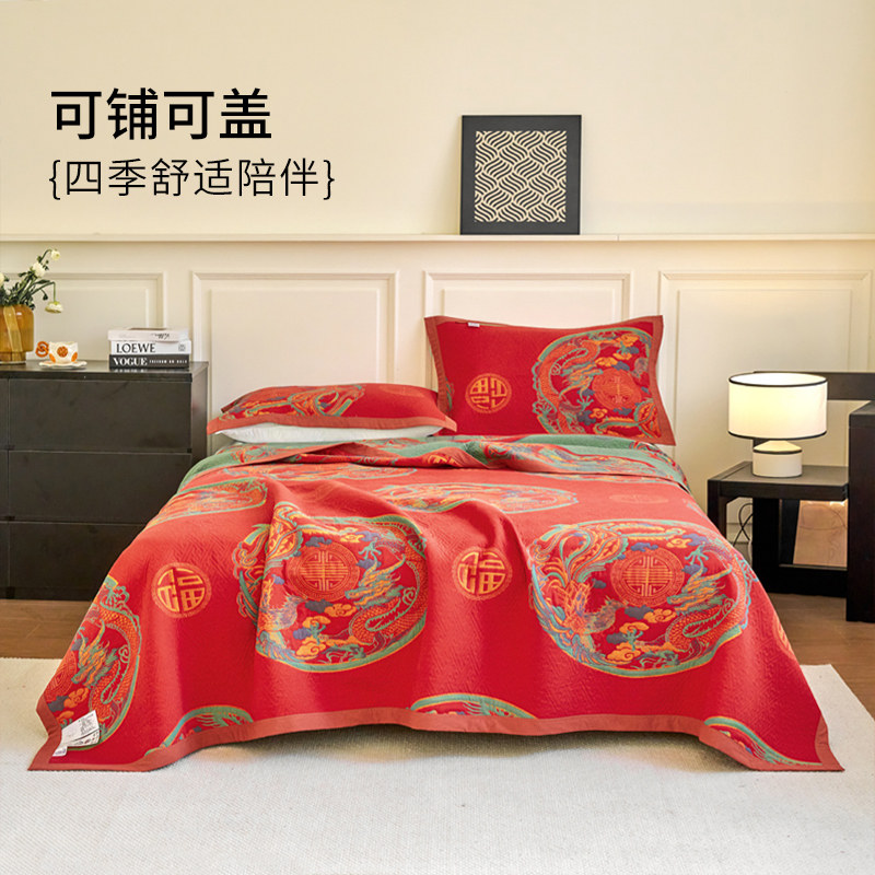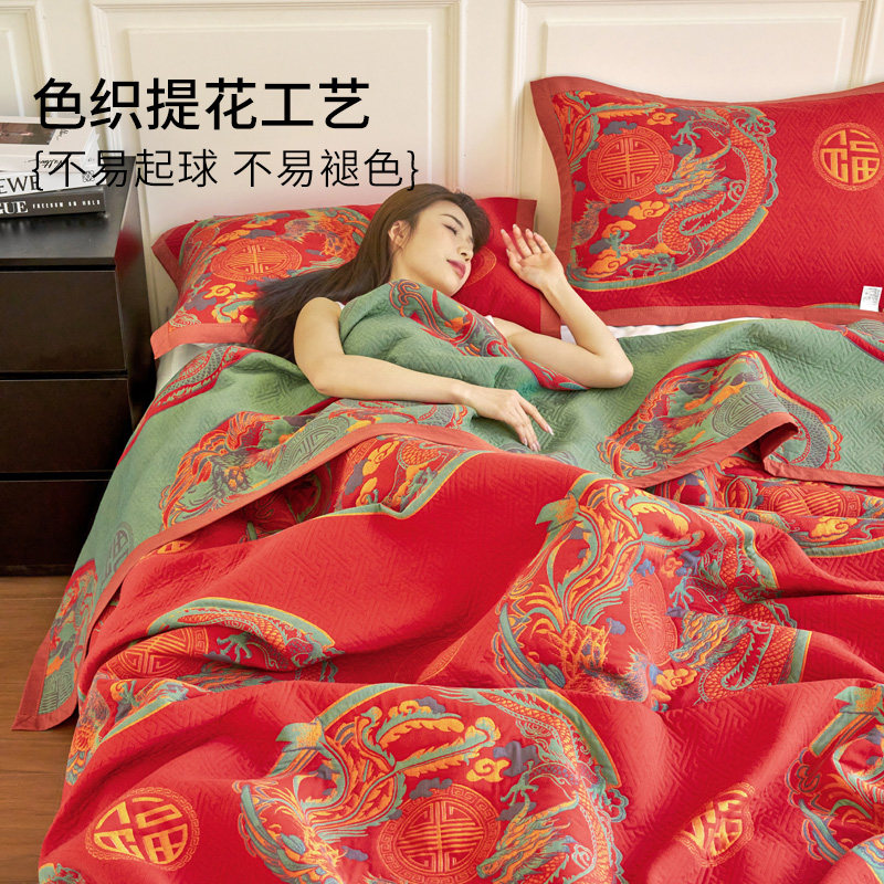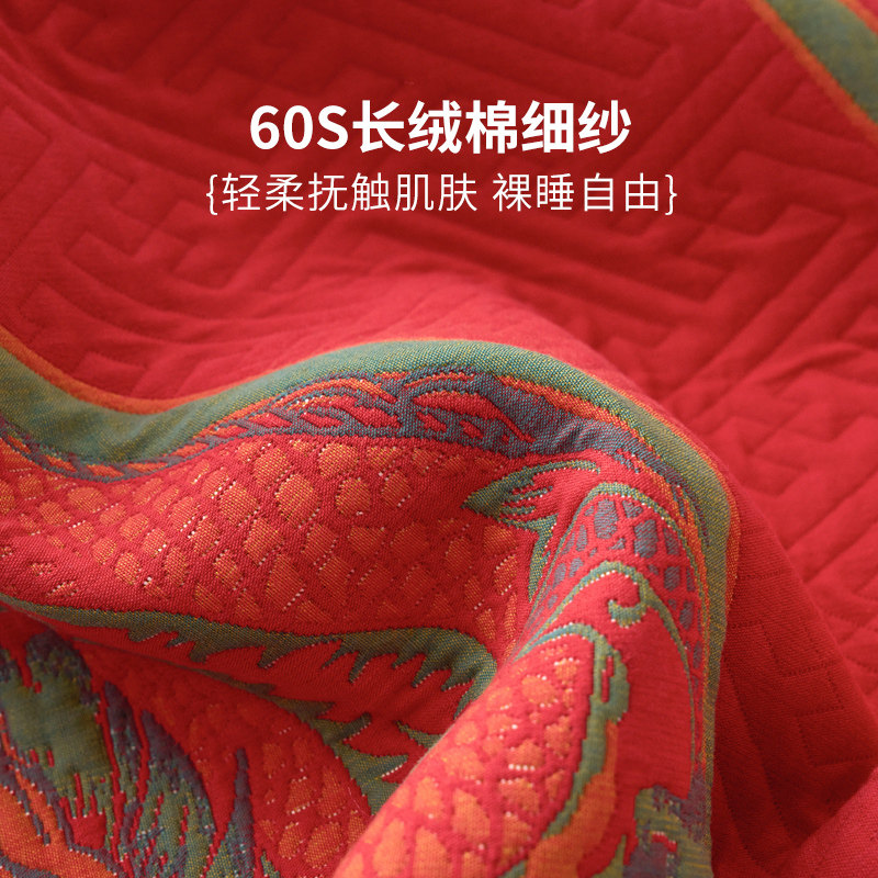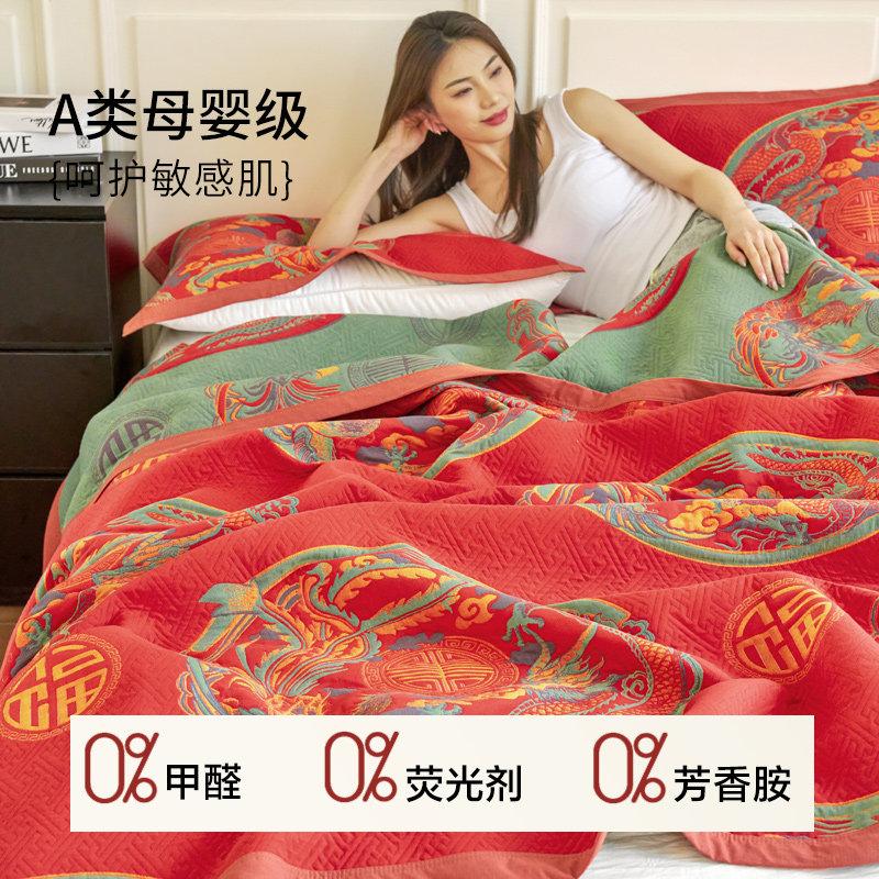 如奕高端婚庆空调被60s长绒棉纱布盖毯毛巾被双人结婚夏凉被全棉