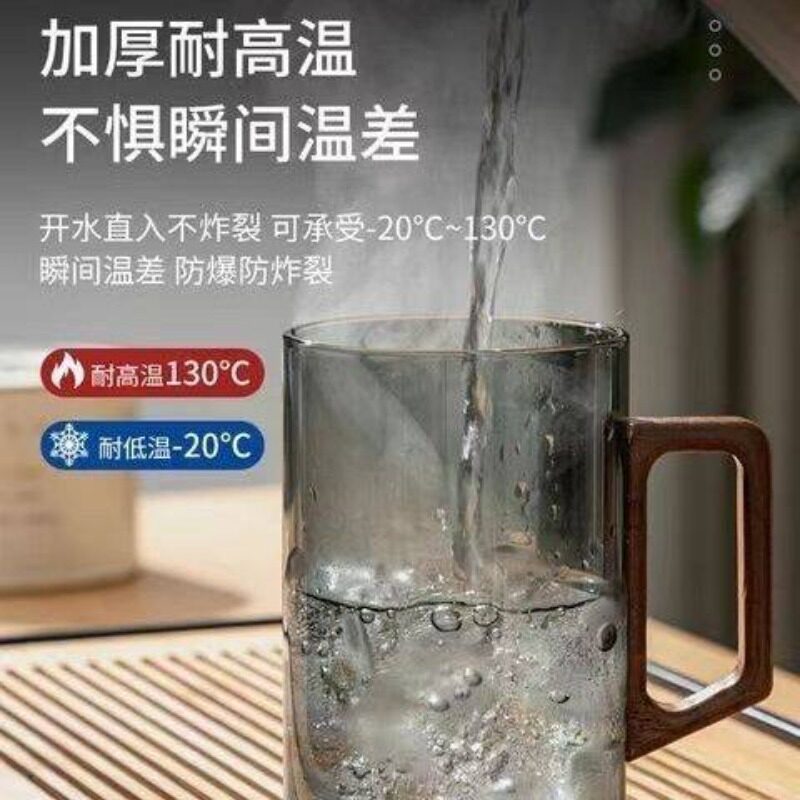 茶杯茶水分离高档杯玻璃观山水杯日式商务杯胡桃把手