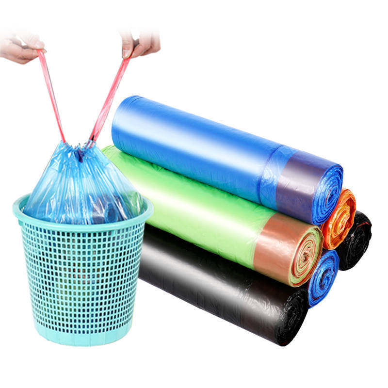抽绳自动收口垃圾袋家用穿绳手提式加厚加大黑色一次性彩色塑料袋