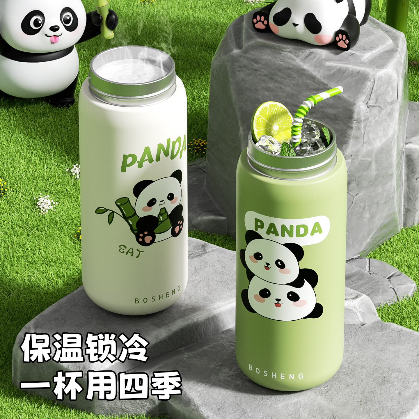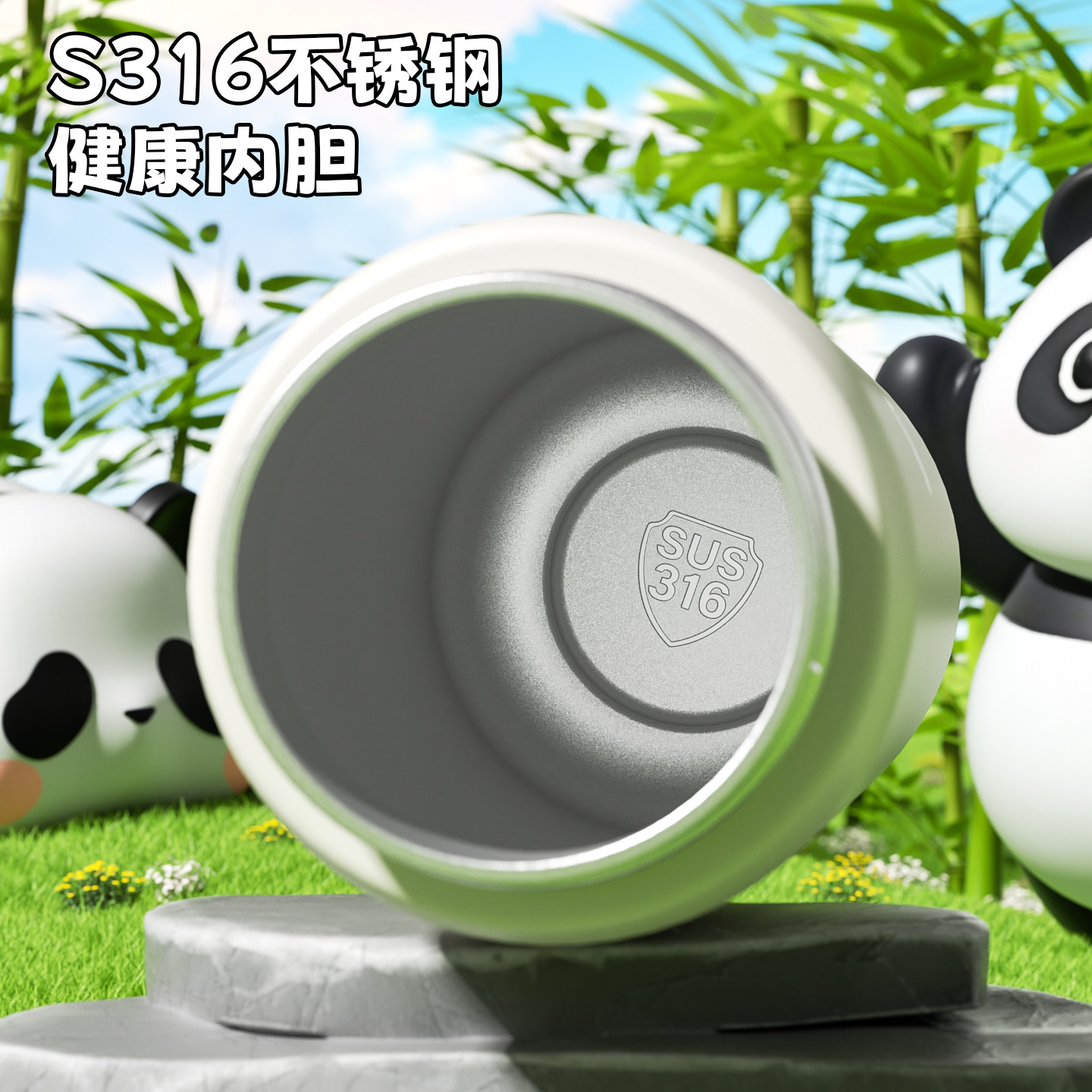 熊猫儿童保温杯便携316不锈钢水杯学生上学吸管2025新款杯子随行