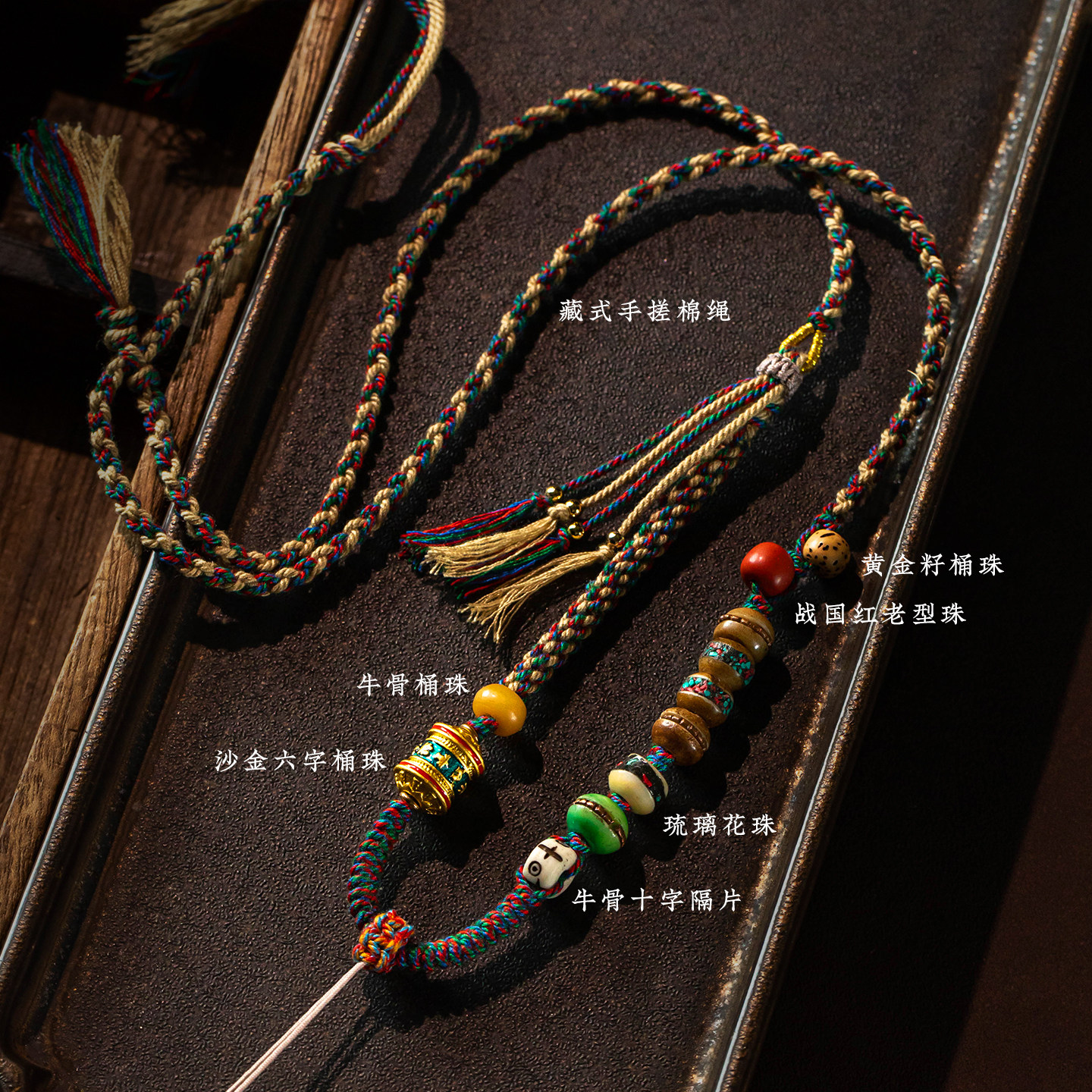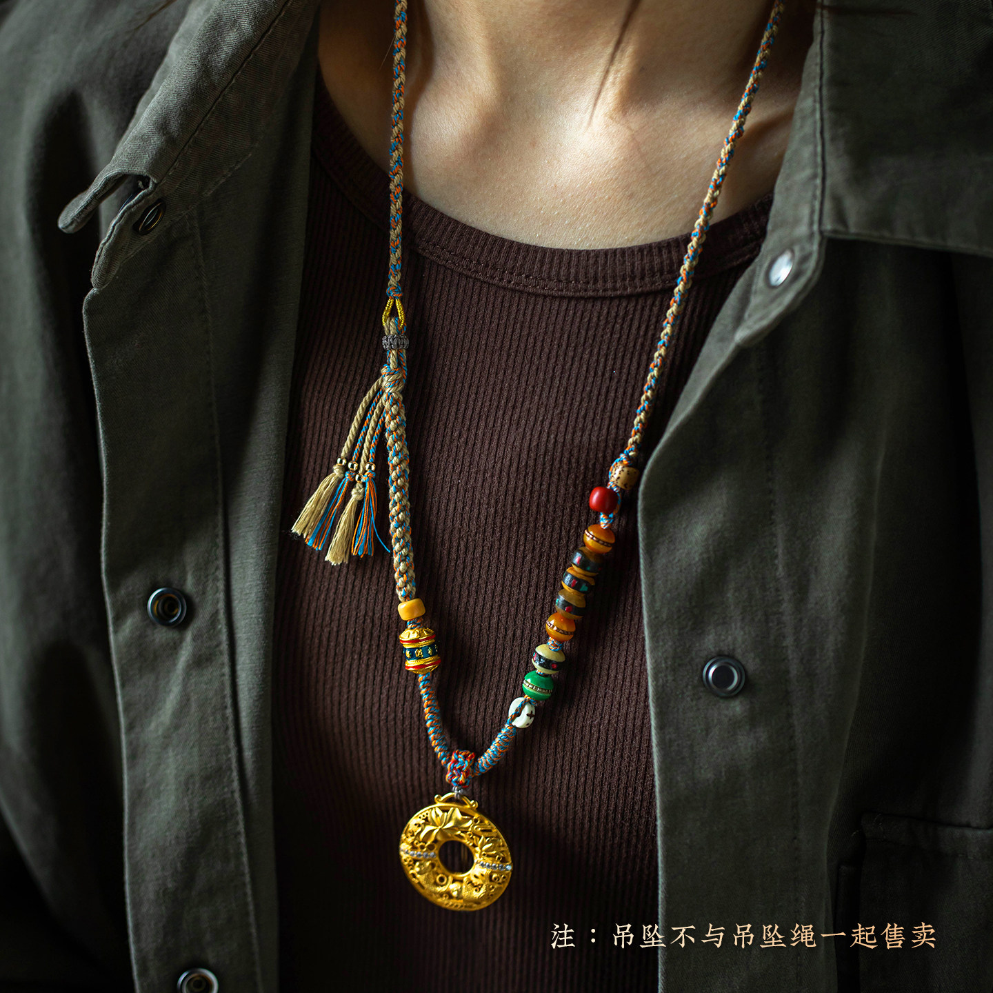 藏式手搓棉民族风全手工编织高端唐卡佛牌挂绳黄金吊坠配饰绳子