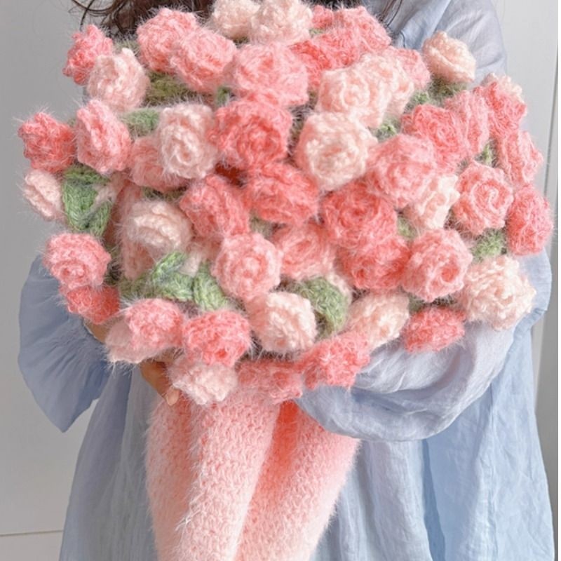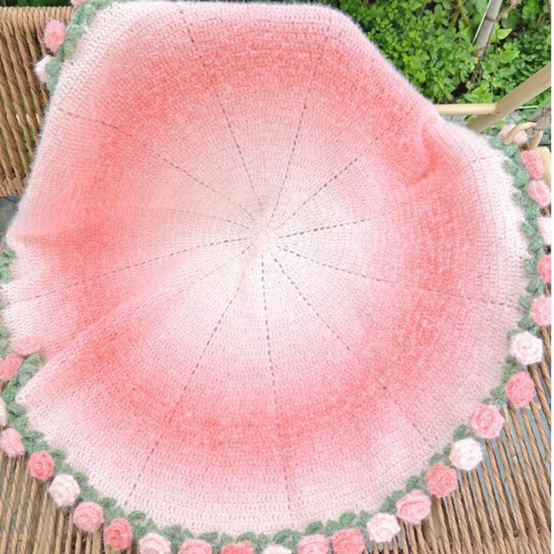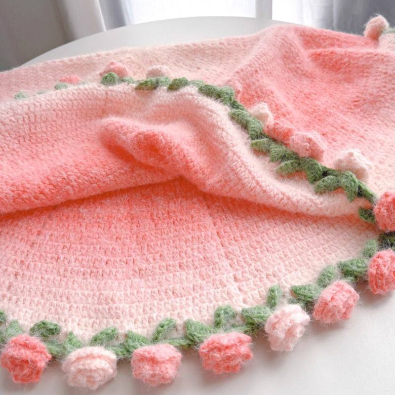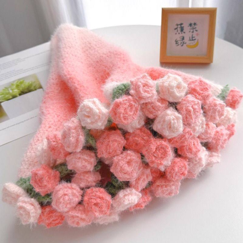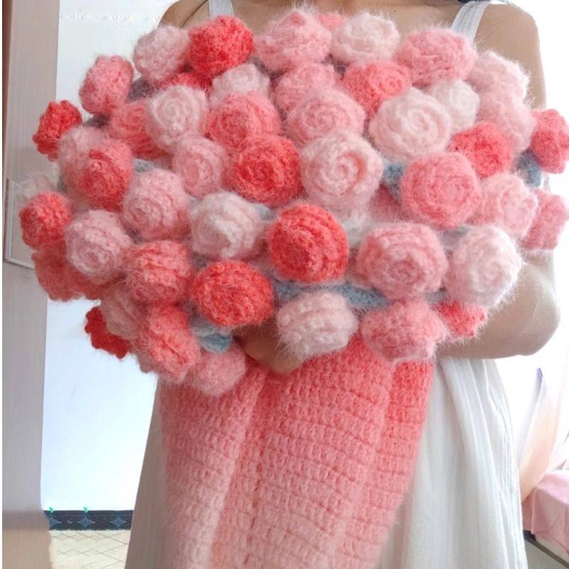 新款渐变玫瑰花束毯子手工编织diy材料包毛线钩织花朵芝士瑞雪
