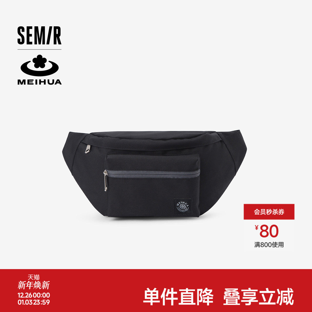 森马胸包男梅花系列2024新款大容量腰包户外运动风斜挎包情侣背包