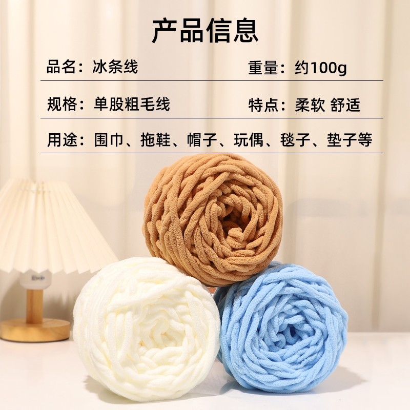 冰条线手工diy编织牛奶棉送女围巾粗毛线团棒针线拖鞋粗线红色