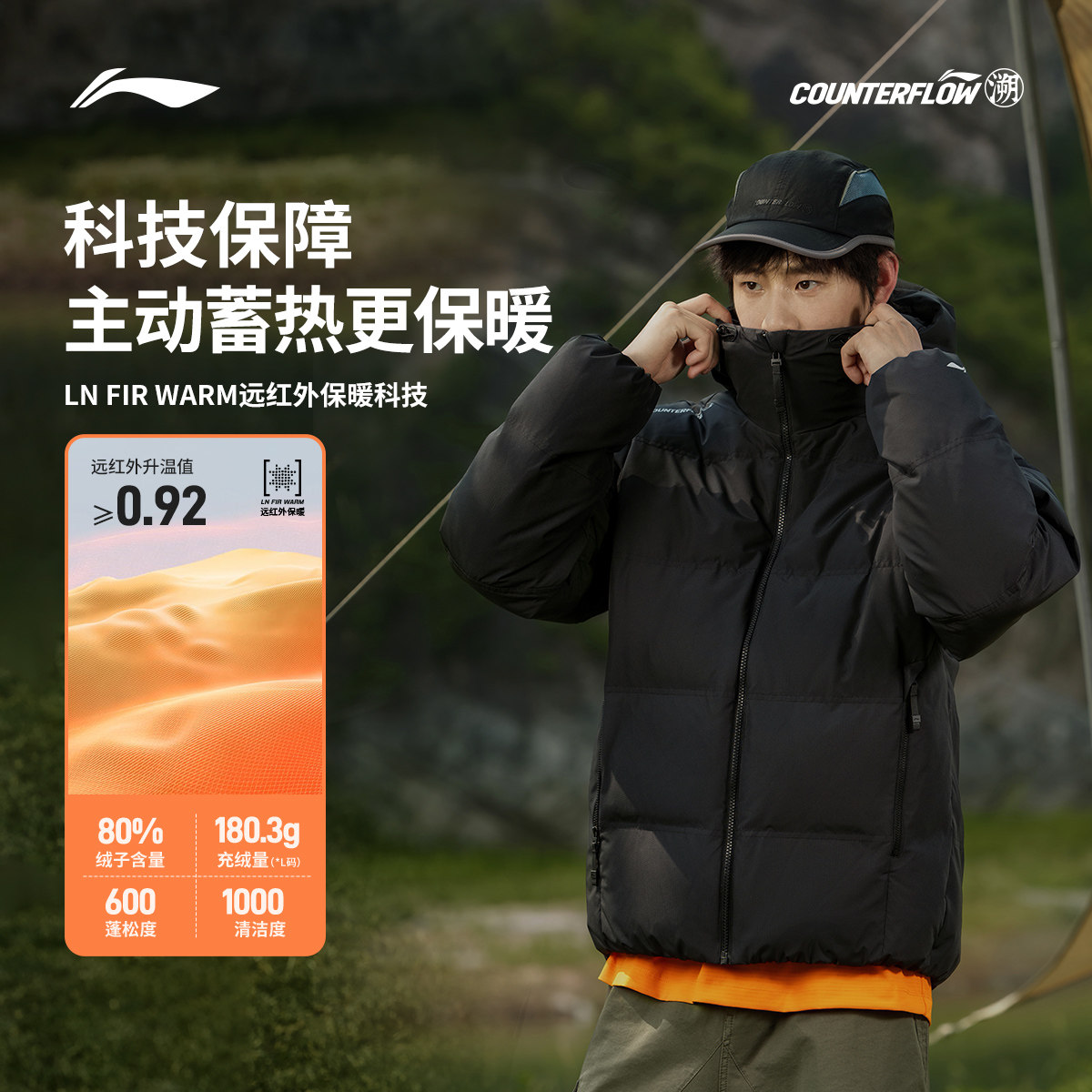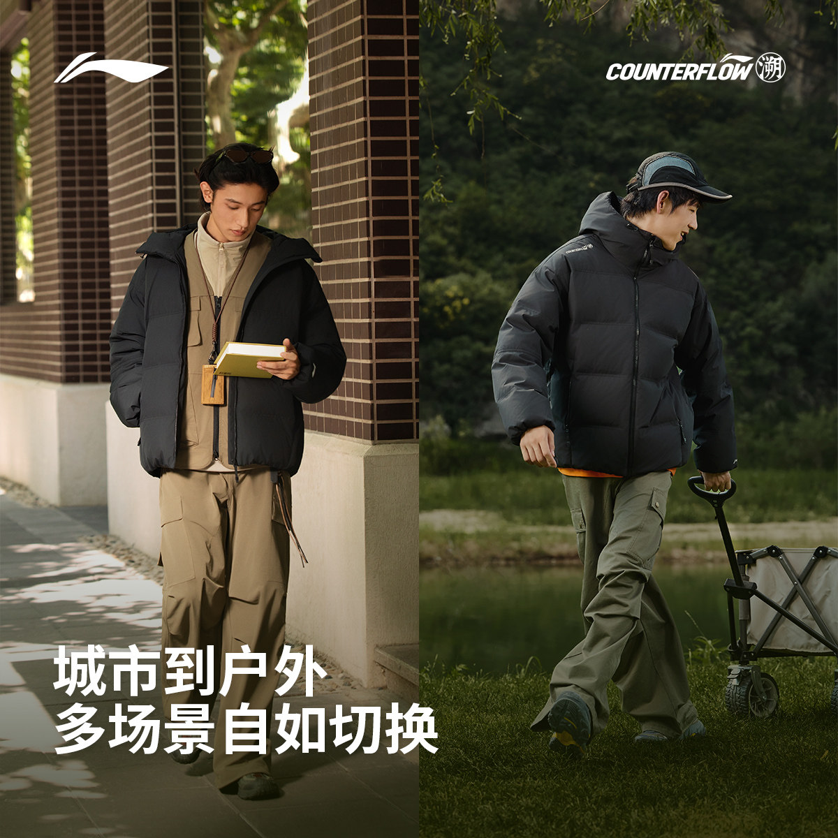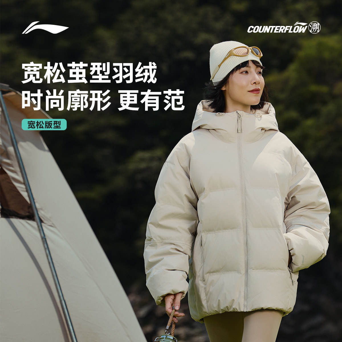 李宁户外CF溯丨珑壳防泼水短款羽绒服男女连帽宽松冬季运动服