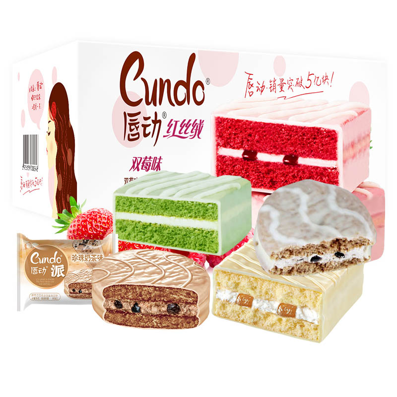 唇动红丝绒蛋糕巧克力涂层面包早餐整箱食品夜宵充饥零食小吃休闲