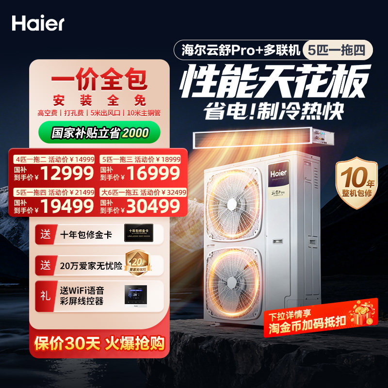 【全民补贴】海尔云舒Pro+全屋定制中央空调家用一拖二/三/四/五